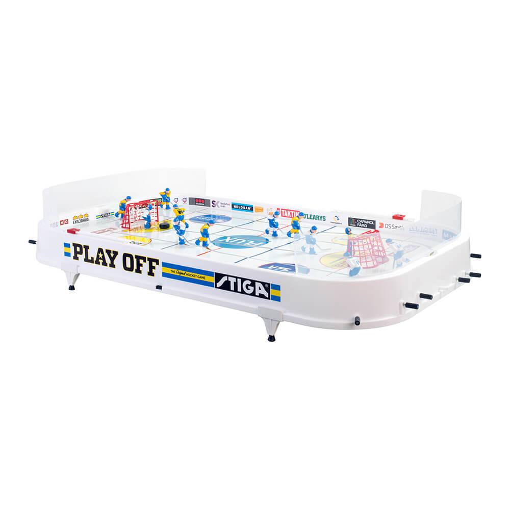 Хоккей уже много лет объединяет и влечёт миллионы ребят. Вместе с настольным хоккеем Stiga Play off играйте за команду Швеции или Финляндии! Окунись в захватывающую хоккейную игру с помощью настольного хоккея, в котором вы будете контролировать игроков и шайбу с помощью стержней. Настольная игра имеет прочную конструкцию, игроков на металлических подставках, клюшки из металла и спицы для управления. Устойчивость игрового поля и бортики из качественного пластика предотвращают выход шайбы за пределы поля.