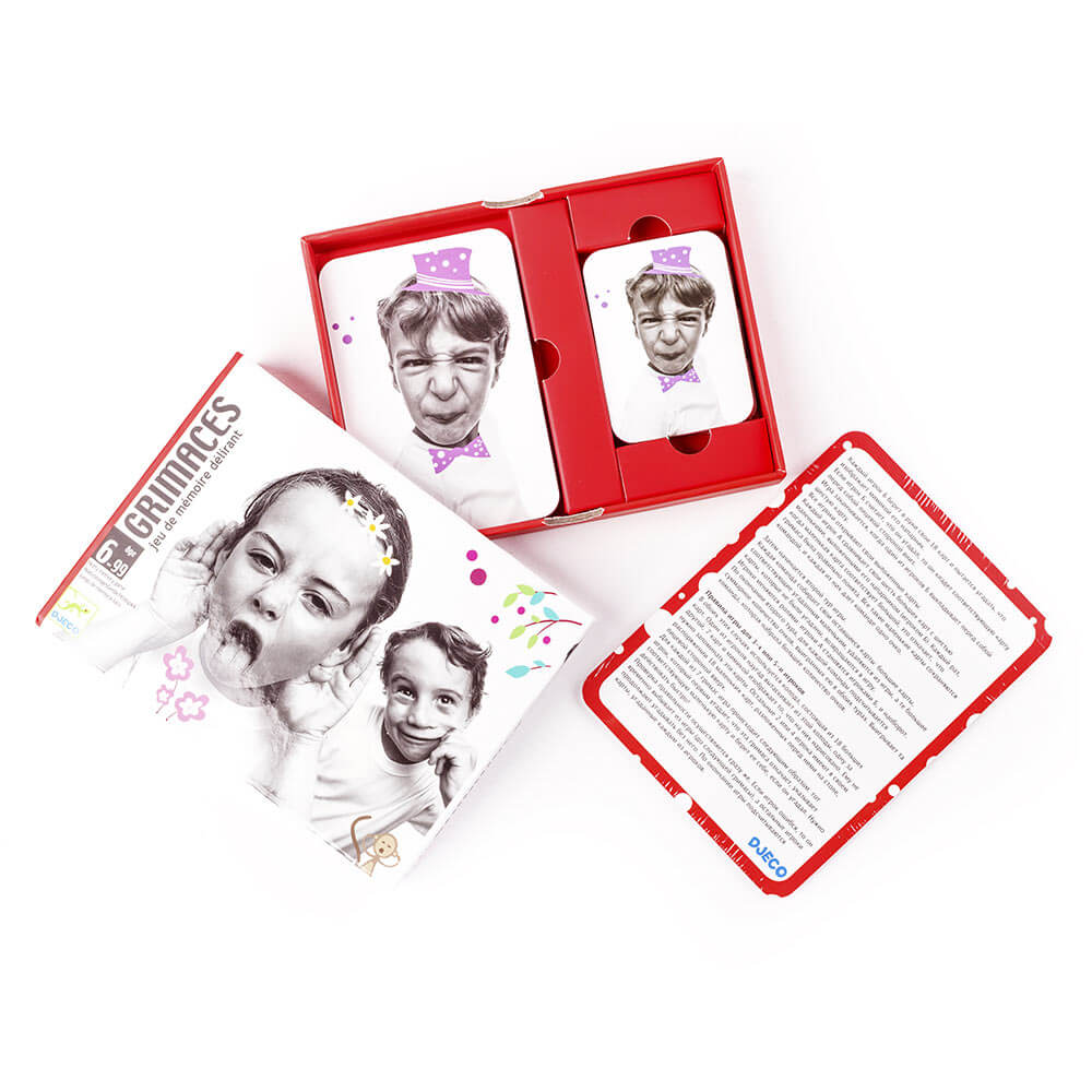 Если ваш ребенок гримасничает, то используйте это в правильном русле! Игра "Гримасы" поможет ребенку проявить себя, развить актерские таланты. Участники разбиваются в команды по четному количеству игроков. Ребята должны показывать гримасу, выпавшую на карте, а остальные угадывать. Малыш разовьет мимику, внимательность, память и скорость реакции. Такие игры позволяют скромным детям расслабить, проявить себя. Здесь открываются актерские таланты, а самое главное игра поднимает настроение. Карточки разрисованы в смешном стиле настоящими художниками. Комплект упакован в красивую и компактную коробку.