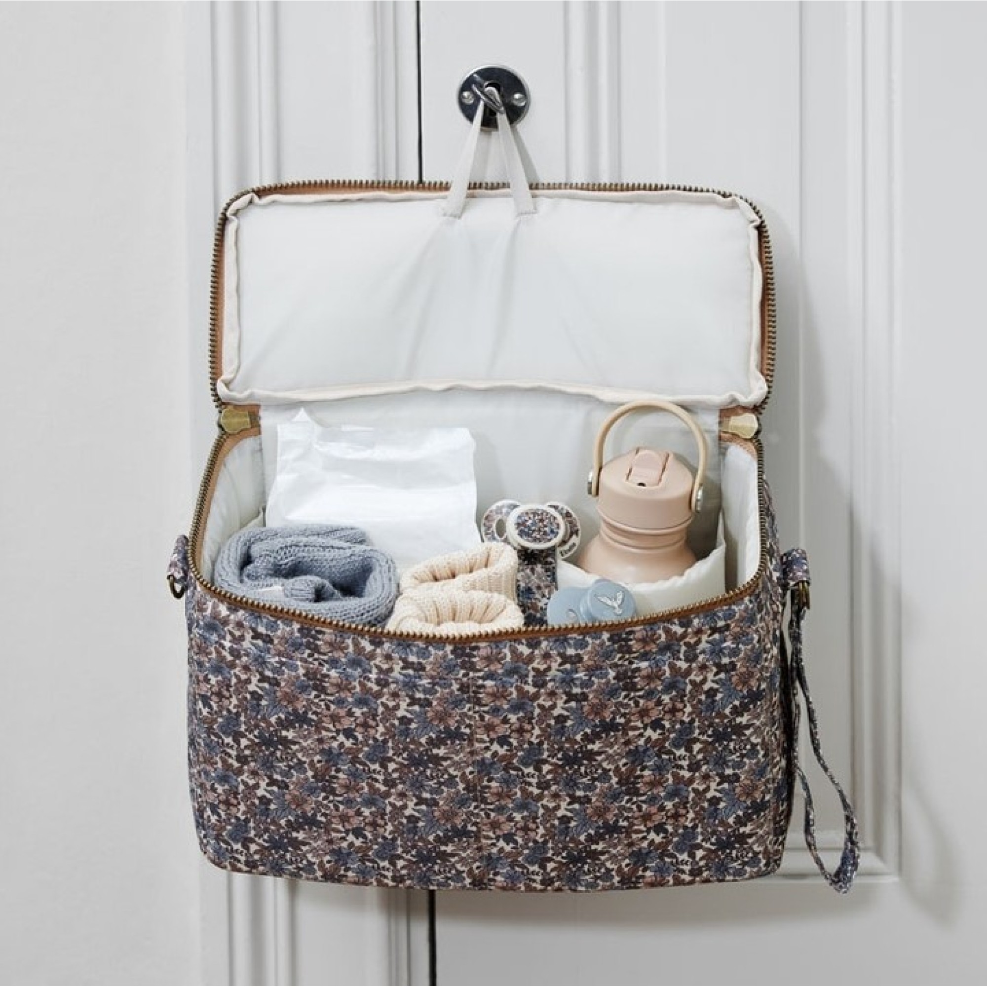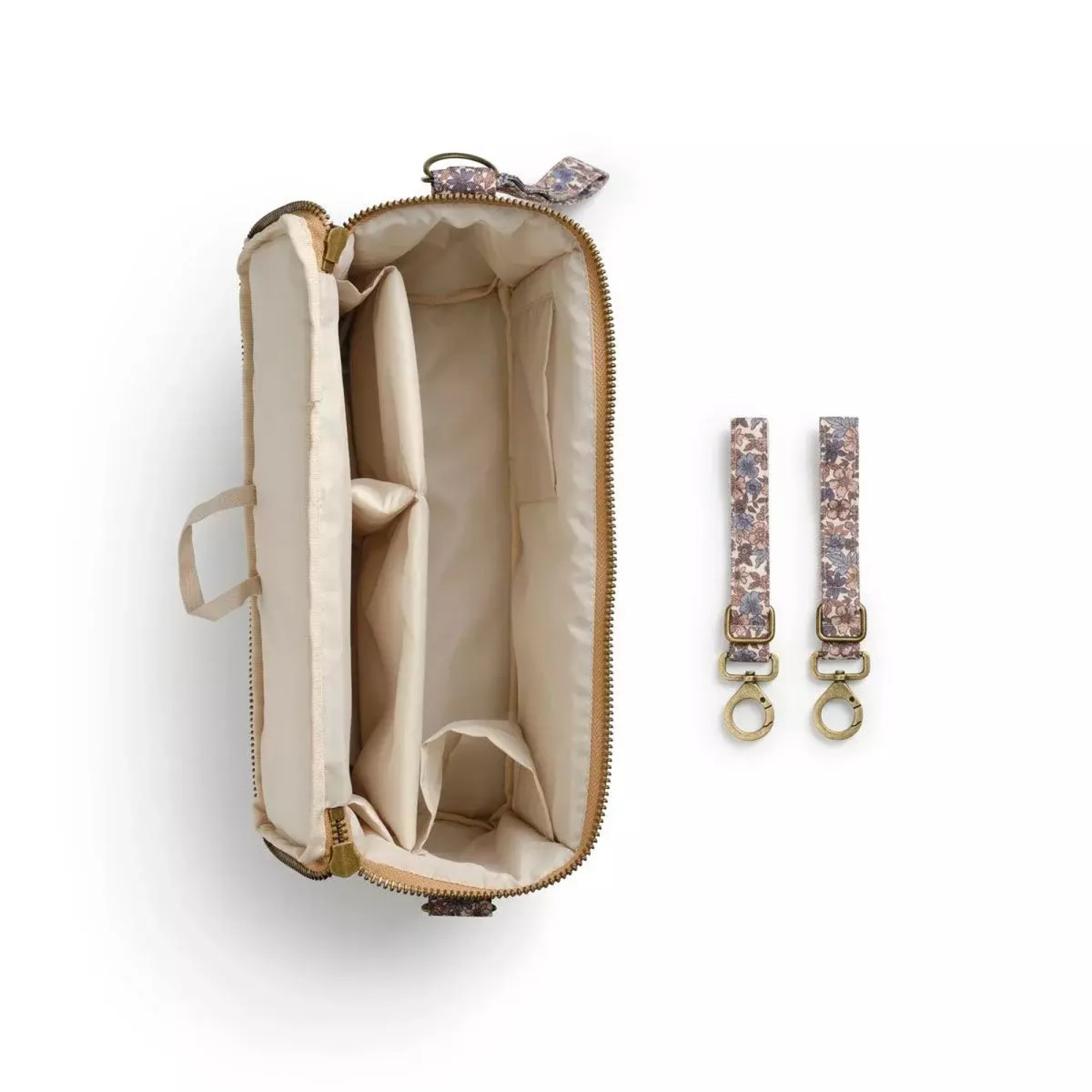 Органайзер Elodie Details Blue Garden вместит самые необходимые вещи по уходу за малышом или для прогулки. Закрывается на молнию. В комплекте ремешки для подвешивания органайзера на коляске.