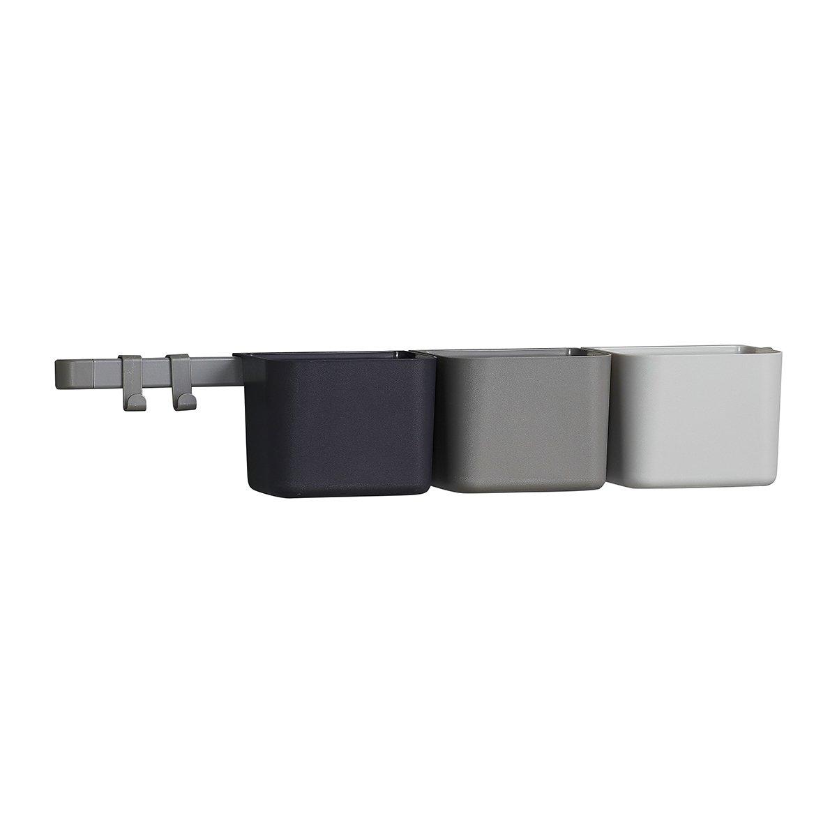 Органайзер представляет собой набор из 3 контейнеров сочетающихся цветов, включает длинную рейку и два крючка.