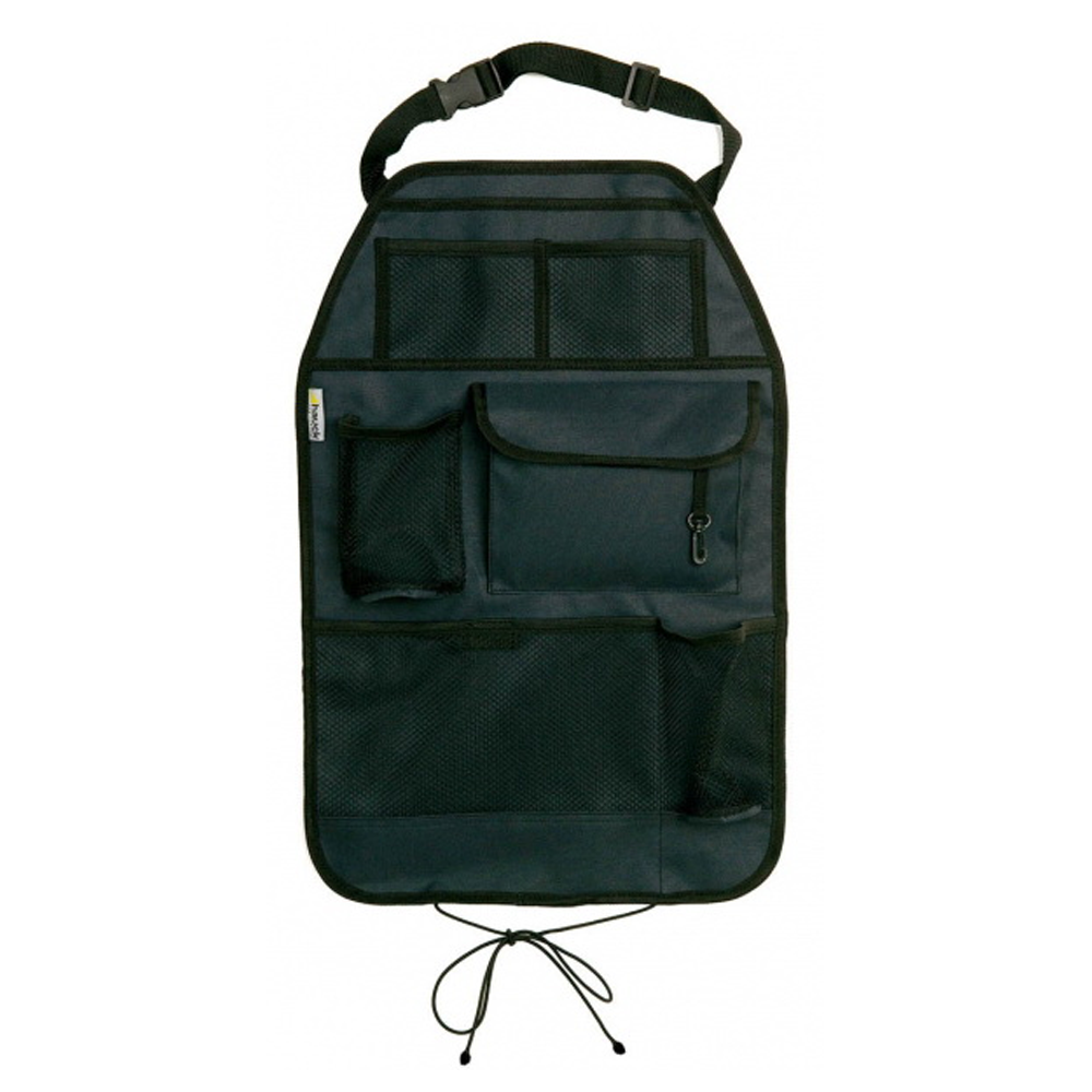 К тому же, обладая размерами 38 x 58 см., он защищает спинку вашего сидения от появления загрязнений, и при ненадобности компактно складывается для хранения, занимая минимальное пространство. Ведь, заботясь о безопасности и надежности, данный дорожный аксессуар выполнен из высококачественных водонепроницаемых материалов. Представленный удобный органайзер легко и прочно фиксируется под подголовником переднего сидения, с помощью эргономичной защелки и завязок, и так же просто снимается и моется.
