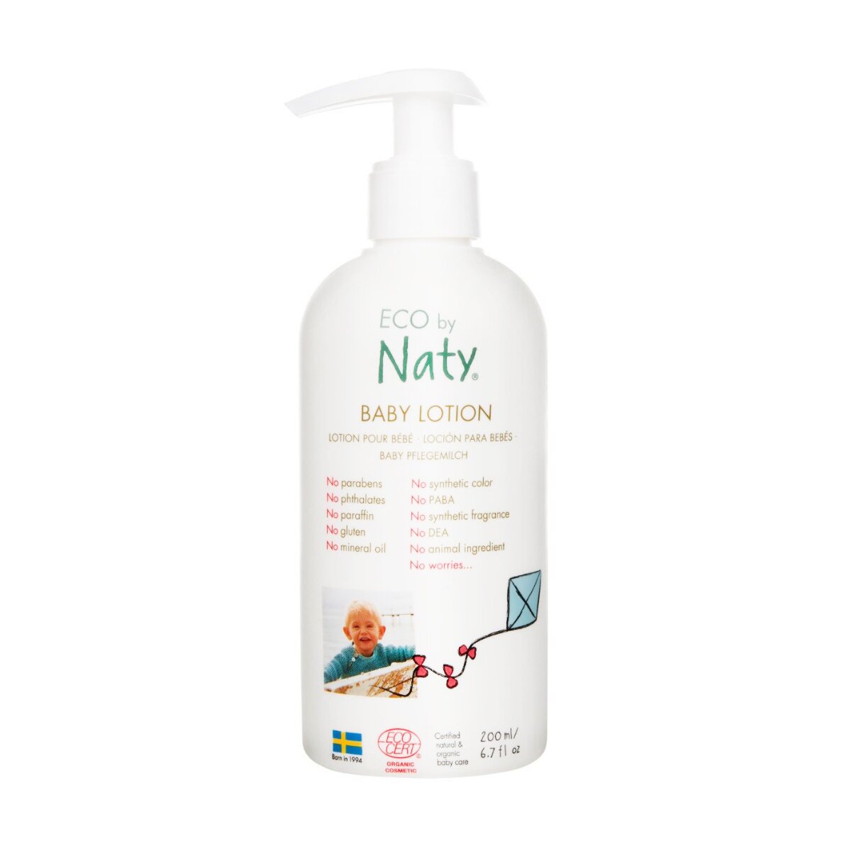 Простая формула для нежного ухода и защиты детской кожи! Органический лосьон для тела шведского бренда Naty разработан специально для детской кожи. Он деликатно увлажняет, питает и защищает от переменчивых условий внешней среды. Средство с нейтральной кислотностью не нарушает естественный pH-баланс кожи ребенка. Удобный дозатор помогает точно отмерять необходимое количество продукта. Лосьон быстро впитывается, не оставляя следов и неприятных ощущений на коже. Он гипоаллергенен, не содержит парабенов, фталатов, минеральных масел, синтетических соединений. Прошел дерматологический контроль.