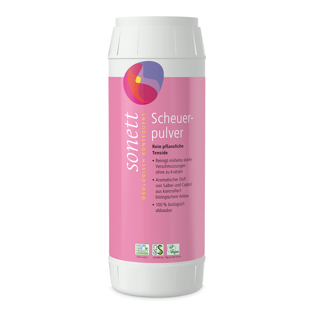 Sonett (Сонет) Органический чистящий порошок 450 г - чистящее средство Sonett является универсальным в использовании на кухне и в ванных комнатах. Оно хорошо очищает ванны, душевые кабинки, унитазы и также легко очищает газовые плиты и духовые шкафы от жирных, подгоревших пятен, не оставляя следов и царапин.