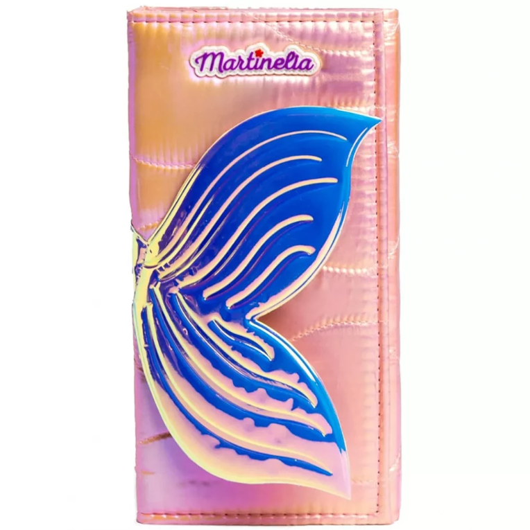 Палитра-кошелек для макияжа Martinelia Let's be mermaids – стильный и яркий набор, созданный специально для маленьких модниц, мечтающих погрузиться в сказочный мир русалок и создавать собственные волшебные образы. Дизайн в форме кошелька сочетает удобство хранения и эффектный внешний вид: компактный, легко помещается в детскую сумочку и удобно открывается.
