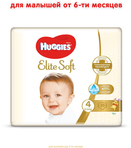 Подгузники Huggies Elite Soft заботятся о нежной коже малыша как мамины объятия. Новая серия Elite Soft разработана специально для малышей, подходят для кожи склонной к раздражениям, одобрено дерматологом. Для их создания использованы очень мягкие материалы внутри и снаружи, для нежной кожи малыша. Инновационный внутренний слой SoftAbsorb поглощает влагу и жидкий стул за секунды, помогая сохранить кожу малыша сухой максимально долго. Мягкие подушечки внутреннего слоя создают нежный барьер между кожей малыша и жидким стулом. Внутренний слой с поглощающими каналами впитывает и равномерно распределяет жидкость по всей длине подгузника, чтобы уменьшить набухание и провисание.Huggies Elite Soft имеет эластичный поясок, чтобы подгузник хорошо прилегал к телу, но при этом не передавливал животик и не натирал нежную кожу малыша. Внутренний кармашек на поясе, предотвращает протеканием жидкого стула по спинке. Микропоры, позволяющие коже «дышать», обеспечивают циркуляцию воздуха внутри подгузника, предотвращают появление опрелостей. Специальный индикатор меняет цвет, когда подгузник становится влажным — так можно определить, когда пора его сменить.