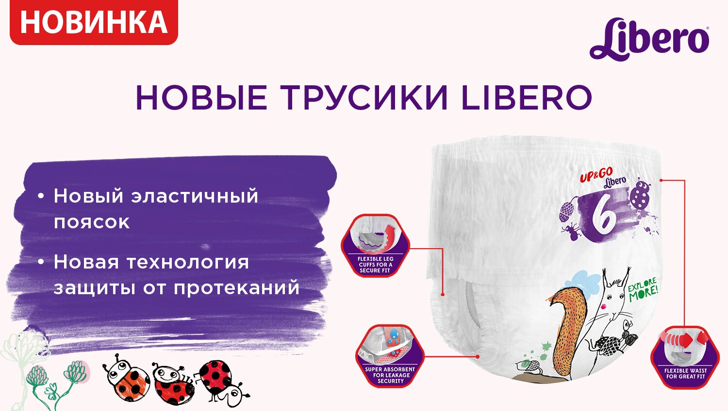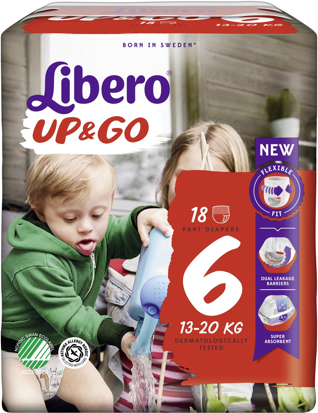Подгузники-трусики Libero (Либеро) Up&Go впитывают, как подгузники, сидят, как обычные трусики. Малыши в восторге от подгузников-трусиков Libero Up&Go. Ведь они созданы специально для детишек, которые активно двигаются и чувствуют себя уже «взрослыми». Подгузники-трусики Libero Up&Go удобно надевать и снимать, что так важно для детей, которые уже пытаются самостоятельно одеваться.