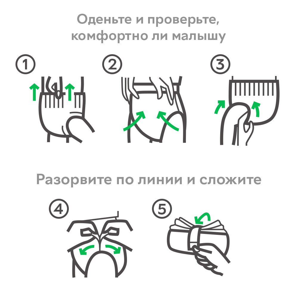 Надев их как обычные трусики, Ваш малыш может сам их спустить, если захочет на горшок. Когда подгузник наполнен, Вы легко снимите его, просто разорвав боковые швы. Подгузники-трусики Libero Up&Go теперь впитывают еще больше и не протекают благодаря улучшенному впитывающему слою и высоким барьерчикам вокруг ножек, оставляя кожу малыша сухой, поэтому Вы можете также использовать их во время длительных прогулок и ночью, чтобы обеспечить ребенку и себе спокойный сон. А благодаря мягкому эластичному пояску вокруг талии, сделанному полностью из дышащего материала, и зауженной ластовице между ножек подгузники-трусики Libero Up&Go лучше сидят. В них так удобно двигаться, как в обычном белье — они принимают форму тела малыша и абсолютно не стесняют его движений. И еще, у всех подгузников-трусиков Libero Up&Go есть специальная клеящая лента сзади, которая поможет Вам с легкостью компактно свернуть их после использования.
