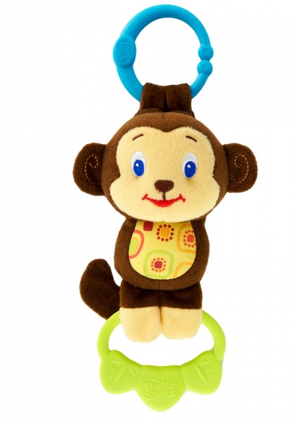 Подвесная музыкальная игрушка жители джунглей Слоник и Обезьянка Bright Starts в ассортименте. Подвесные музыкальные зверята - игрушечка изготовленая из приятной на ощупь разнофактурной ткани. Зверушка с улыбающейся мордочкой не даст заскучать малышу во время прогулки или автопутешествия. Колечко-крепление позволяет надежно и удобно зафиксировать игрушку на ручке автокресла или коляске, а колечко-грызунок, расположенное внизу игрушки, является рычажком включающим одну из 4-х мелодий, что обязательно заинтересует карапуза и он будет тянуть за колечко снова и свнова.