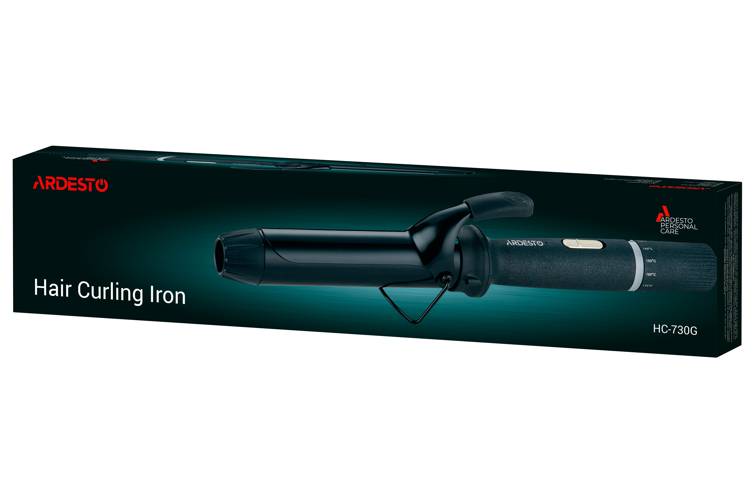 Прямая плойка черного цвета со стильными золотистыми элементами для создания горизонтальных локонов, естественной волны, спиральных (вертикальных) локонов. Диаметр - 32 мм, управление - механическое.