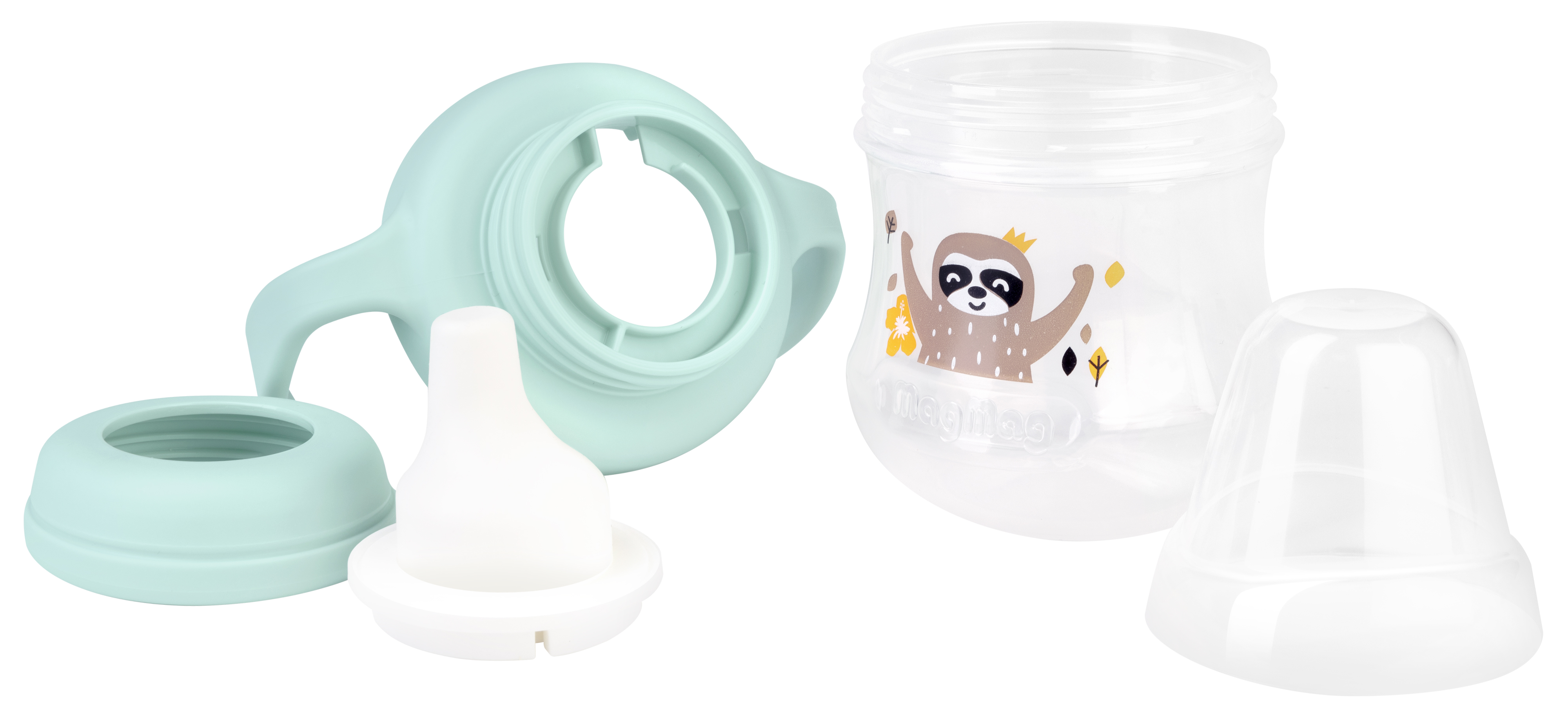 Поильник разборный и прост в уходе. Легкий и безопасный материал, не содержит Бисфенол А. Яркий стильный дизайн с милым Ленивцем.