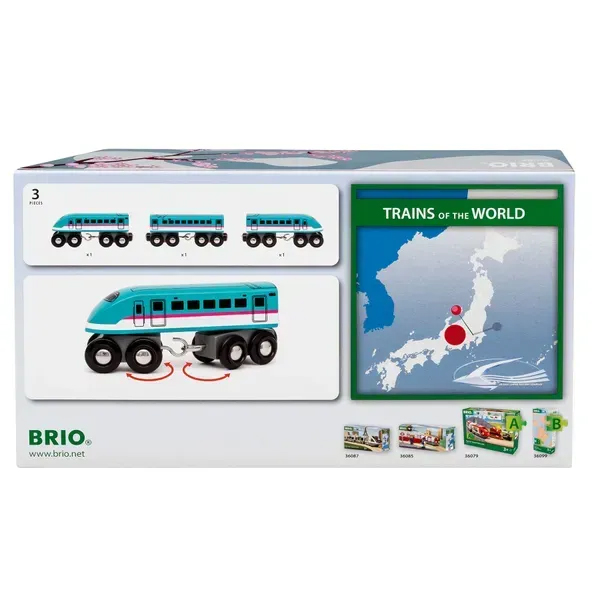 Поезд для железной дороги BRIO Shinkansen Hayabusa (36086) — деревянный поезд из серии BRIO World Trains of the World. Модель вдохновлена легендарным японским поездом Shinkansen Hayabusa.