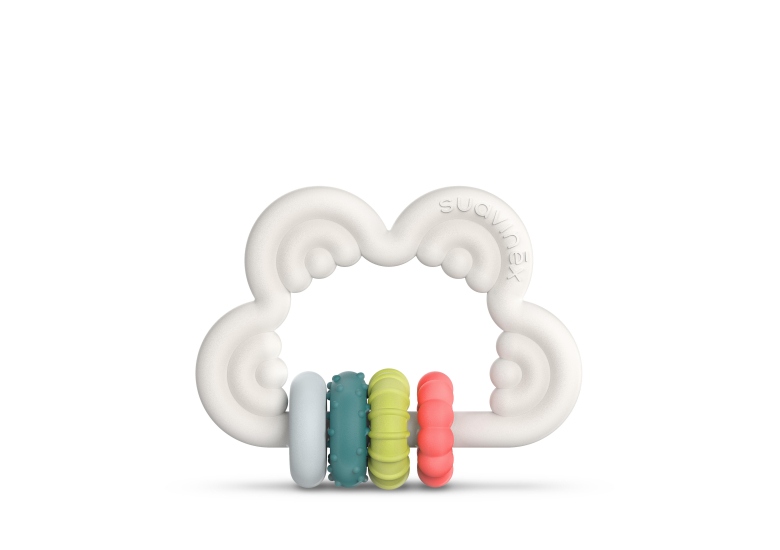 4) Прорезыватель Suavinex: подходит для детей от 6 месяцев, не только успокаивает десну во время прорезывания зубов, но и способствует развитию полости рта и моторики малыша благодаря своим рельефным формам и стимулирующим цветам.
