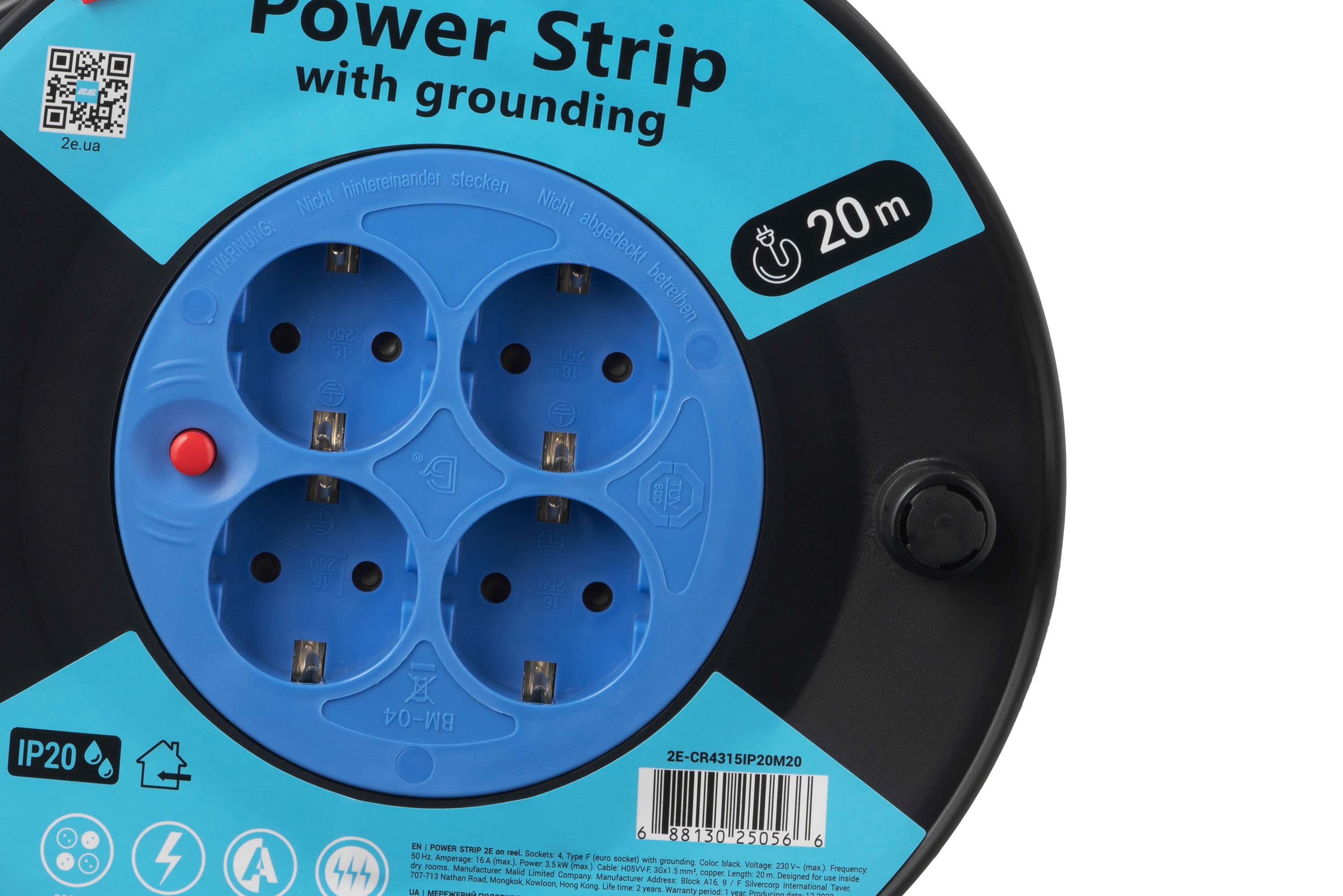 Сетевой удлинитель 2E модель CR4315IP20M20 на катушке предназначен для подключения офисной и бытовой техники суммарной мощностью до 3,5 кВт. Имеет четыре евророзетки типа Schuko (F) с заземлением. Есть эргономичная ручка для переноски, корпус изготовлен из огнестойкого пластика. Трехжильный кабель с сечением жилы 1,5 мм², материал проводника – медь. Черного цвета, длина кабеля 20 м. Класс защиты IP20 – рекомендуется использовать в сухих помещениях.