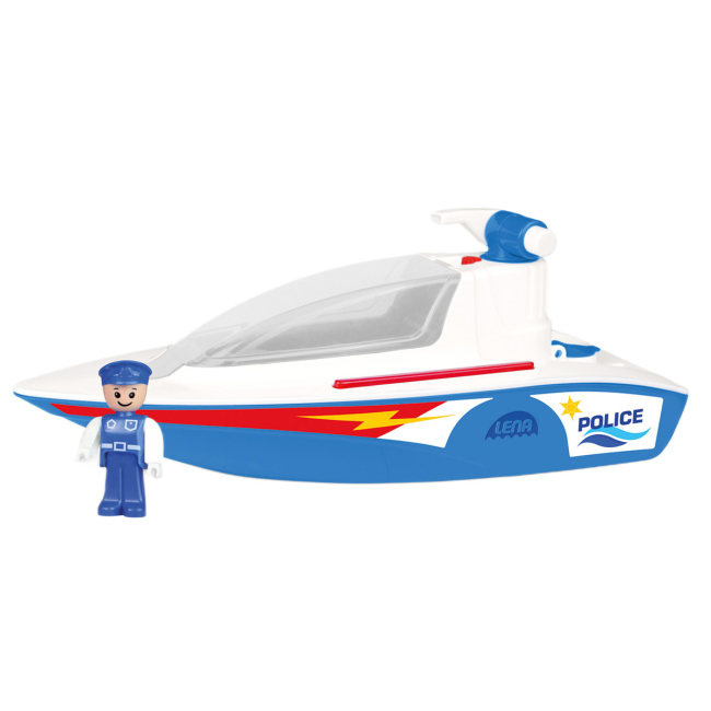 Полицейский катер Lena Boazz не оставит равнодушным вашего малыша. Получите настоящее удовольствие от игры с этим катером в помещении и на открытом воздухе! Имитируйте тушение пожара, доставляйте воду и другие игровые фигурки! В наборе: катер; игровая фигурка. Размер игрушки: 36 см. Игра с катером способствует развитию воображения, внимания и мелкой моторики. Рекомендовано для детей от 2-х лет.