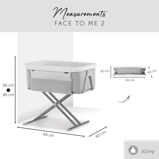 Благодаря регулируемой высоте в 5 положениях, Face to Me 2 легко адаптируется к вашей кровати, независимо от того, низкая ли она, или это высокий раскладной диван.
