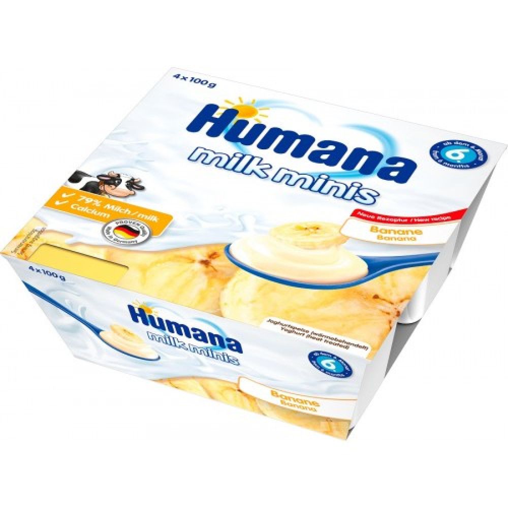 Кисломолочный десерт Humana с бананом изготавливается из коровьего молока и бананового пюре. В составе натуральные ингредиенты, которые проходят тщательный контроль качества.