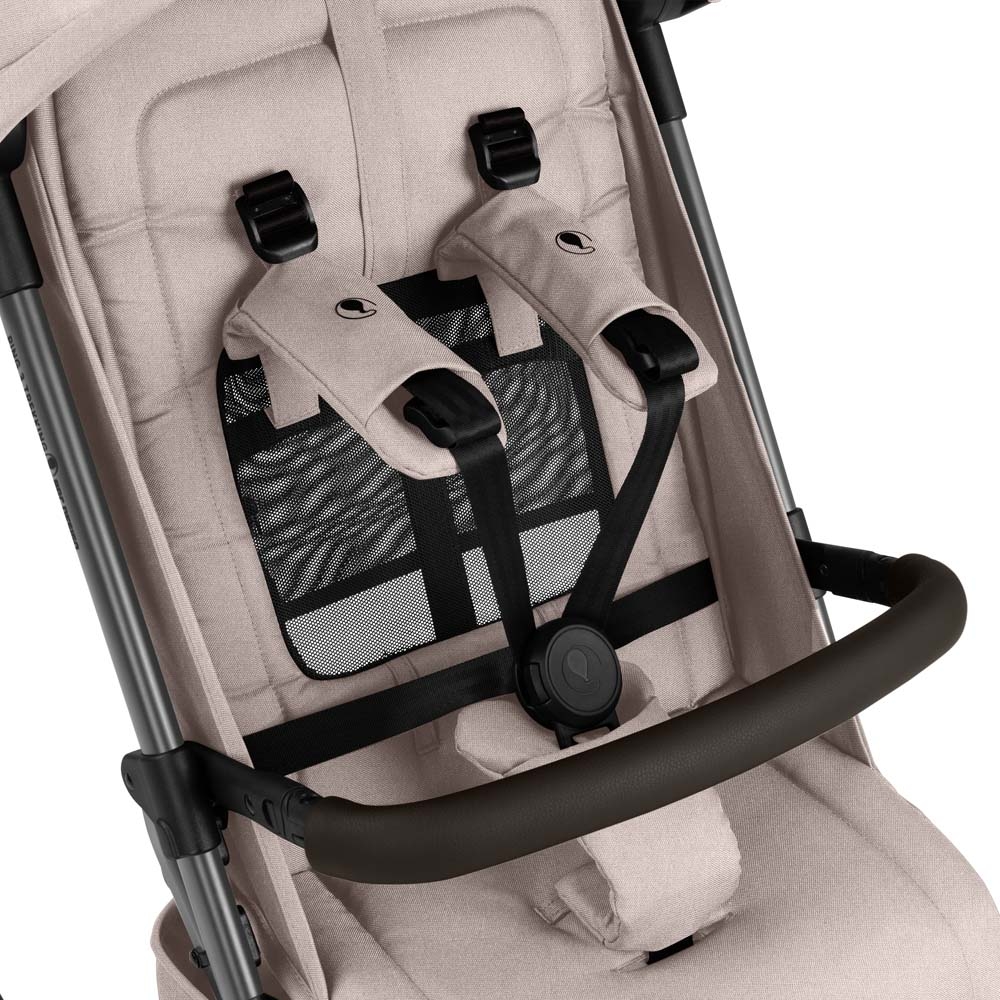 Очень большой раздвижной солнцезащитный козырек с фактором защиты UPF 50+ надежно защищает ребенка от солнечных лучей, пока он наслаждается прогулкой в полной мере. Конечно же, ваш ребенок в полной безопасности. Умная 5-точечная система ремней безопасности HappyBelt® легко регулируется благодаря практичной магнитной застежке и бесступенчатой регулировке ремней спереди. Мягкие плечевые ремни слегка выступают над спинкой, чтобы вы могли легко посадить ребенка в коляску.