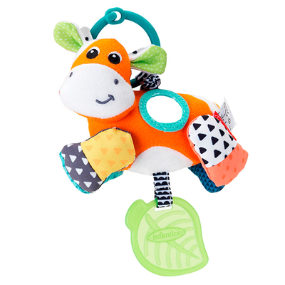 Игрушка выполнена из качественных, приятных на ощупь материалов. Благодаря креплению изделие можно брать с собой на прогулки и поездки.