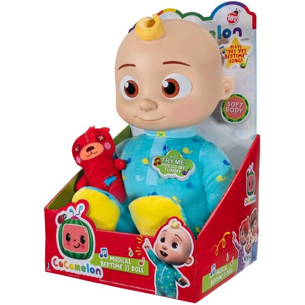 - Милый плюшевый пупс воспроизводит отрывок из популярной детской песенки CoComelon «Да, да, перед сном!»