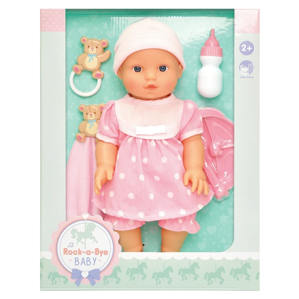 - Поставляется с аксессуарами: погремушкой-медвежонком, бутылочкой для кормления, тарелкой, ложкой, полотенцем.