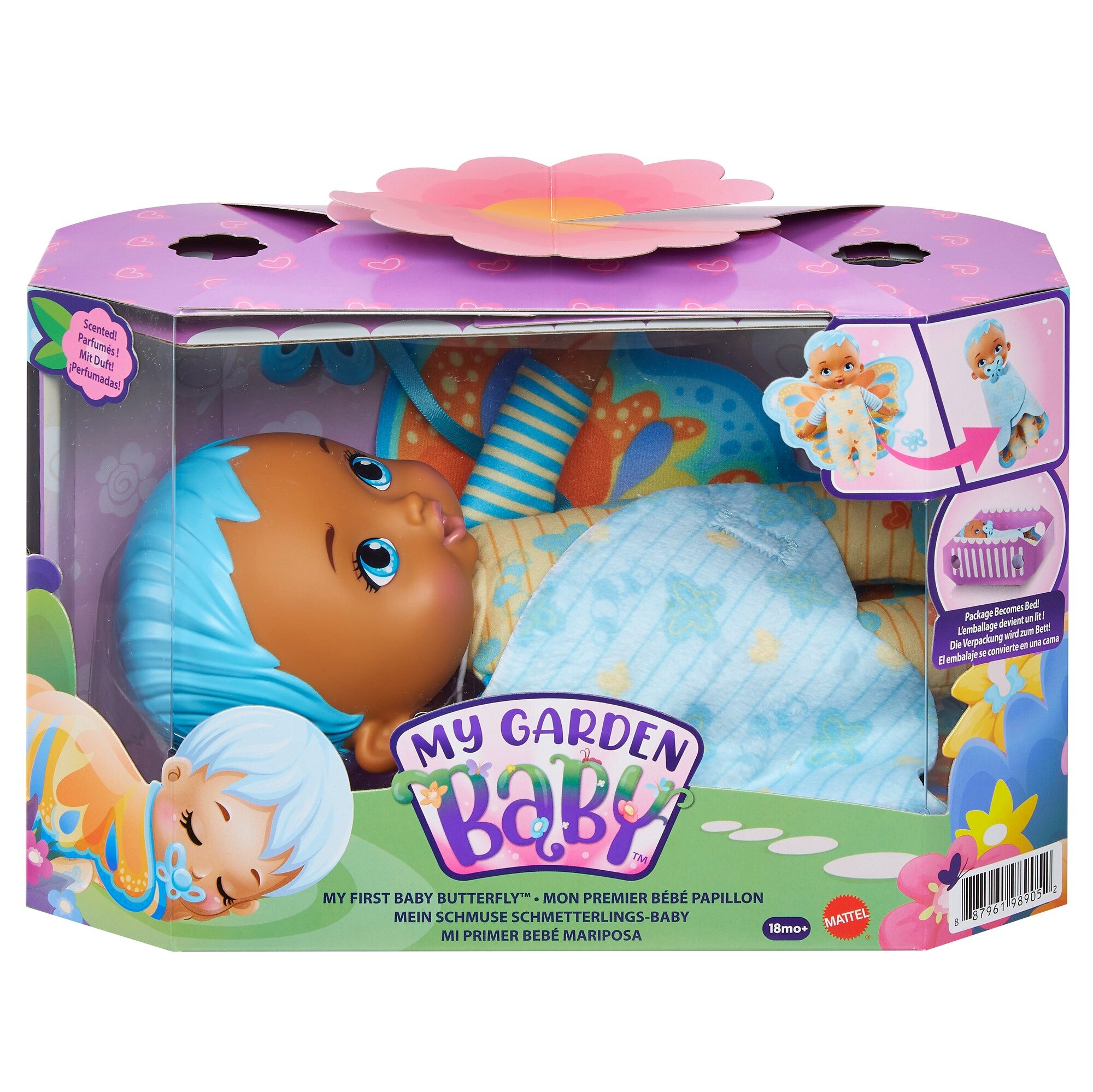 Пусть пупс My garden baby My first baby butterfly Голубые крылышки перенесет вашего ребенка в магические сады сказочных фей. А яркие крылья напомнят о волшебном происхождении малышки. Особенности: успокойте крошку с помощью прикрепленной к одежде соски; мягкие крылышки голубого цвета имеют жасминовый аромат; коробку можно использовать как кроватку; заверните ребеночка в крылышки, чтобы они стали одеяльцем.
