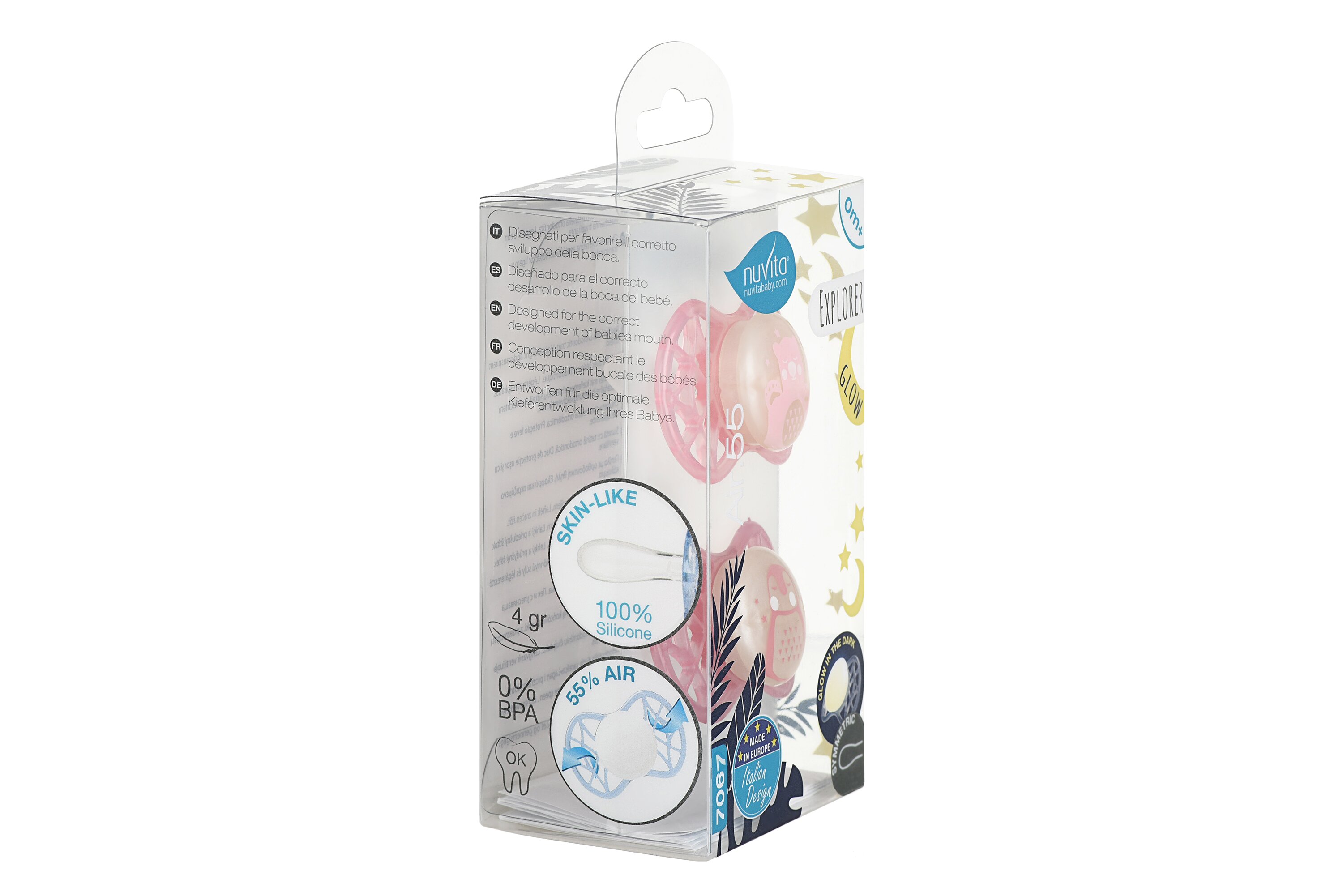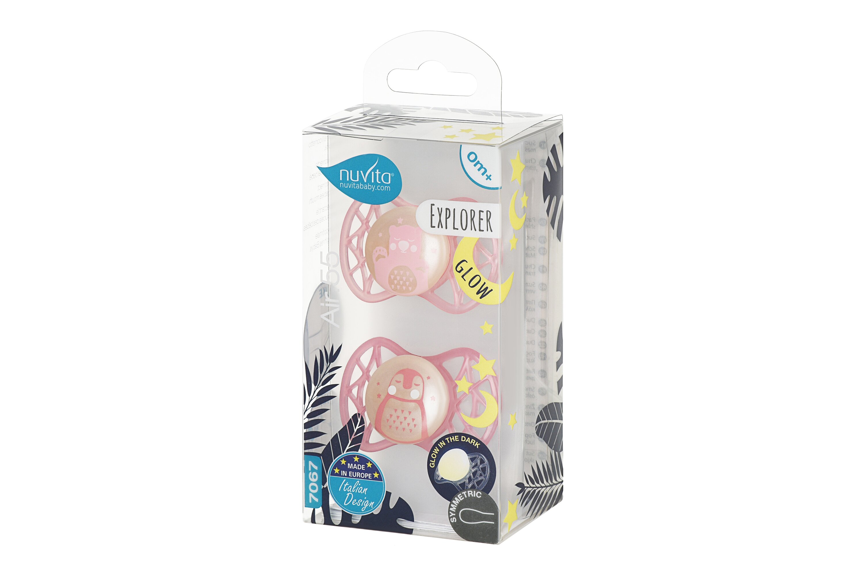 Пустышка Nuvita NV7067 Air55 Explore симметрическая 0m+ светящаяся в темноте (мишка, пингвин). Пластинка соски на 55% состоит из воздуха обеспечивая почти полную аэрацию области вокруг рта, избегая скопления слюны, которая может раздражать кожу.