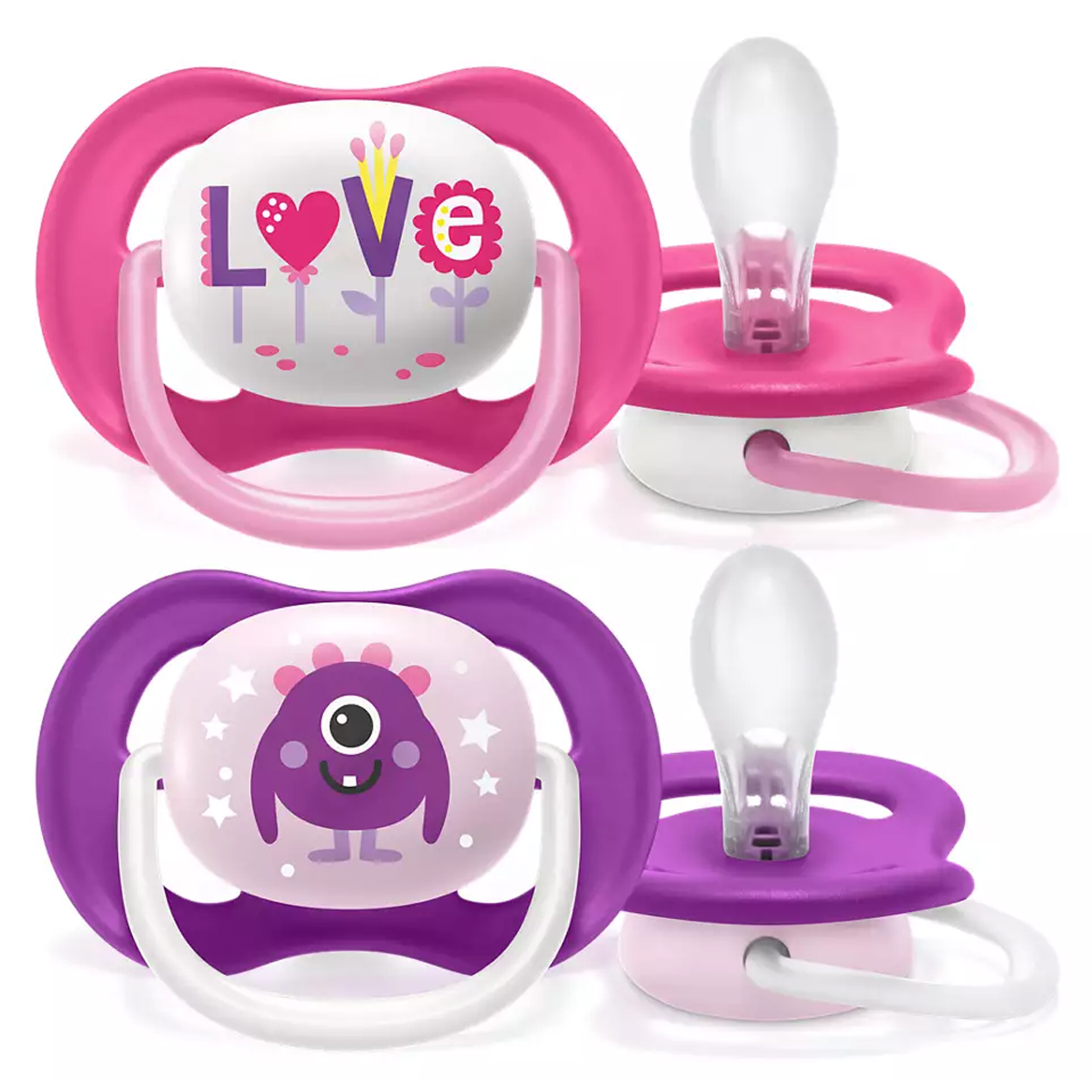 Пустышка Philips Avent (Филипс Авент) Ultra Air I love успокаивает ребенка, позволяя нежной коже дышать.