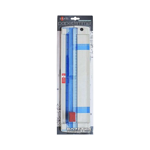 Резак с роликовым ножом установлен на прозрачной подъемной линейке с разметкой. На платформе размещена полоска самовосстанавливающегося коврика, имеется разметка для точного расположения бумаги и фиксатор.