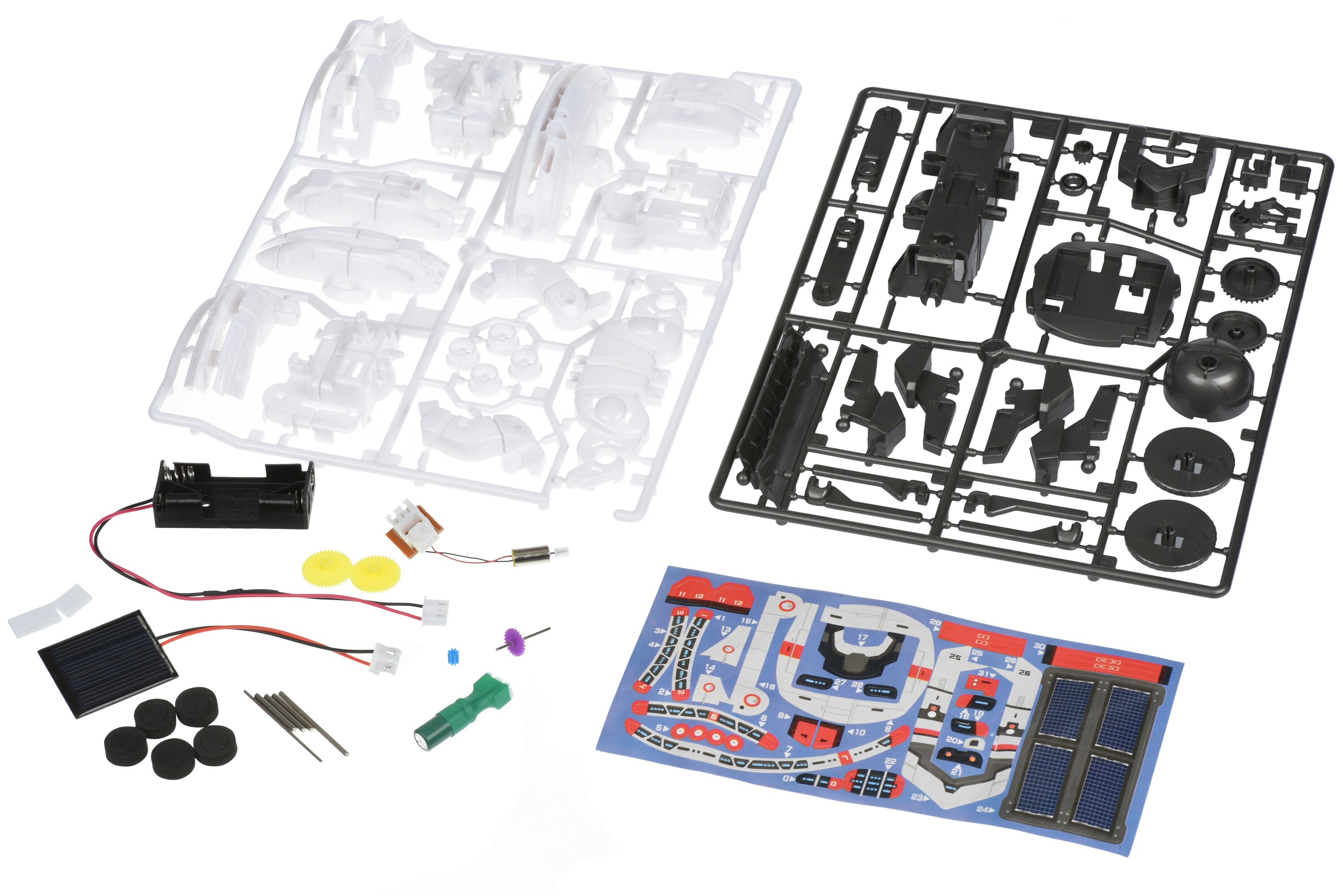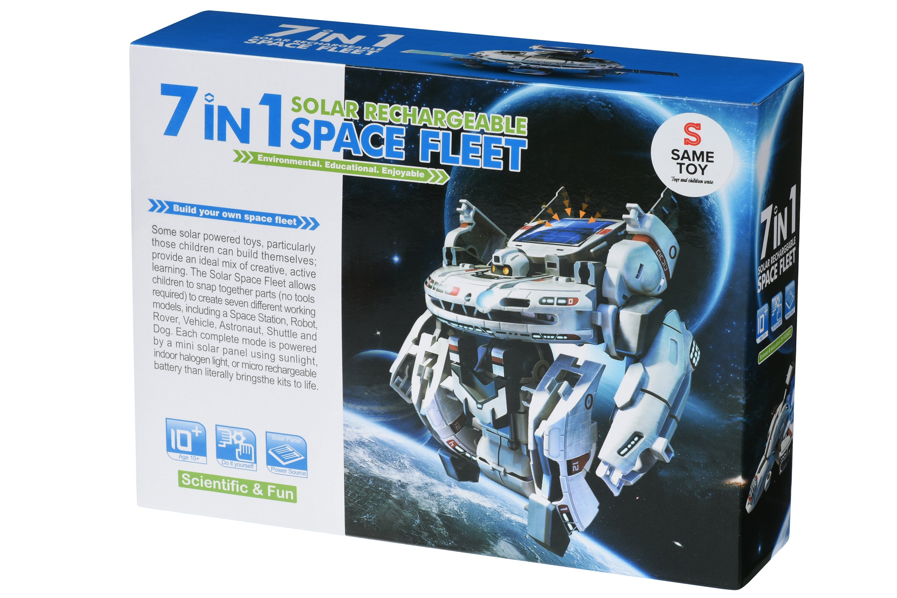 Набор Космический Флот позволяет ребёнку собрать самому семь различных космических моделей: Космическую станцию, Шаттл, Механика, Луноход, Исследователя, Собаку, Астронавта. Здесь есть все, что может понадобиться для исследования неизведанных космических просторов.Каждая модель работает от небольшой солнечной панели с помощью энергии солнца или от батареек.