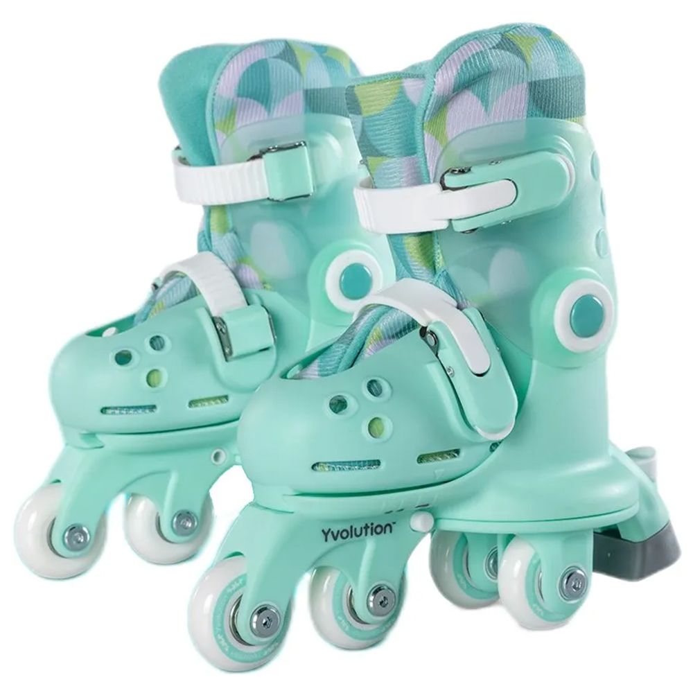 • Ролики Yvolution Switch Skates Голубые позволяют ребенку научиться кататься с раннего возраста. Обувь регулируется в 4-х размерах. Стабильные, благодаря параллельным колесам, эти ролики позволяют вашему ребенку сохранять равновесие. Для того чтобы расположить колеса в одну линию – достаточно лишь нажать кнопку, и мчаться вперед.
