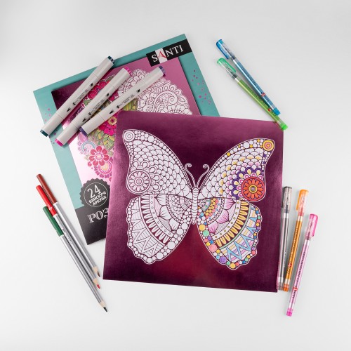 Жизнь современного человека полна стресса. Многие задают себе вопрос – как остановиться, оглянуться и спокойно продолжать жить. Есть много способов обрести душевное равновесие. Но самый увлекательный и интересный – прикоснуться цветными карандашами к прекрасным узорам от ТМ SANTI, оживить потрясающий мир животных и птиц, погрузиться в волшебные узоры мандал. Взмахнув маркером или карандашом, словно волшебной палочкой, любой человек может почувствовать себя волшебником. От всех проблем не останется и следа. Это и есть настоящая магия. Каждая страница имеет элементы из металлизированной фольги.