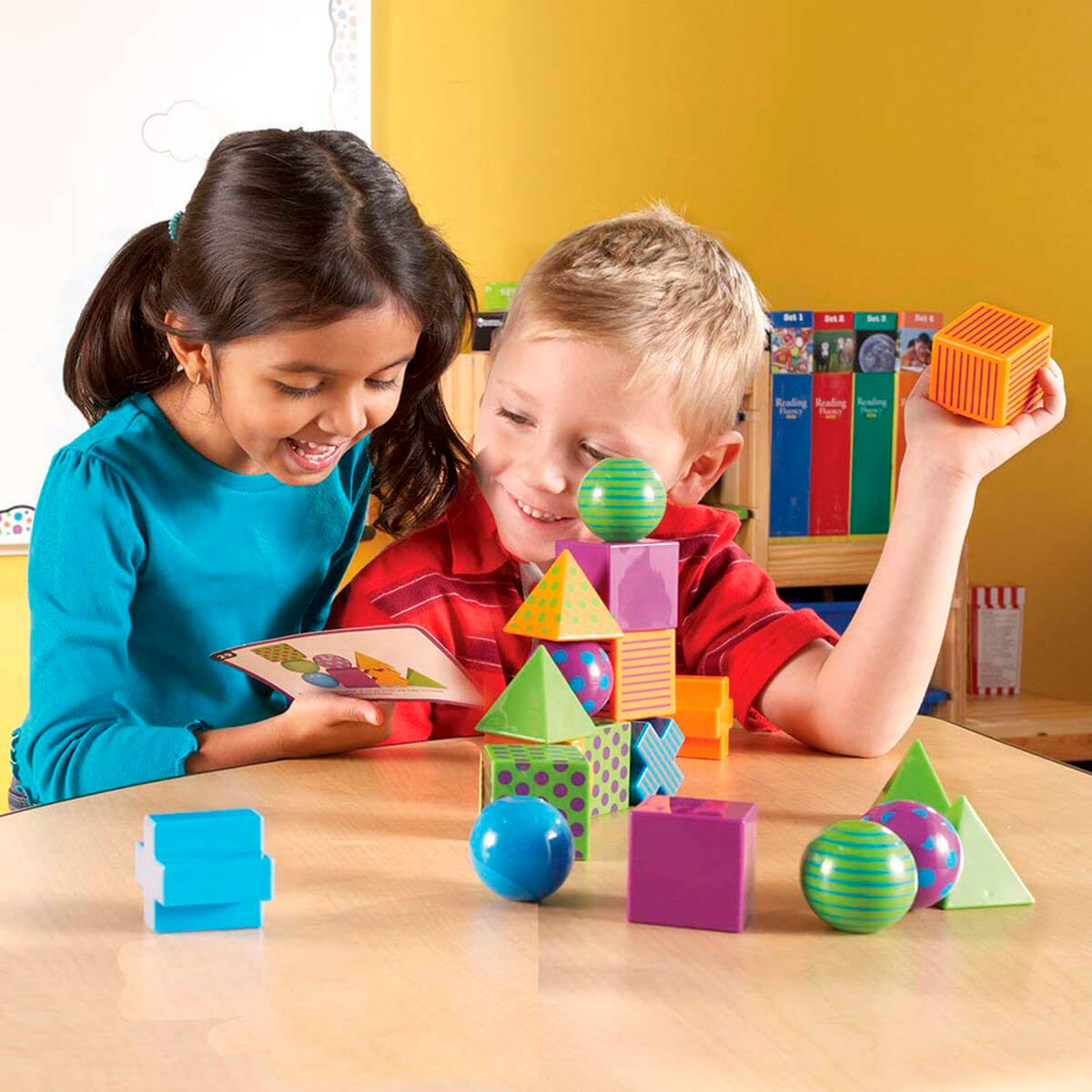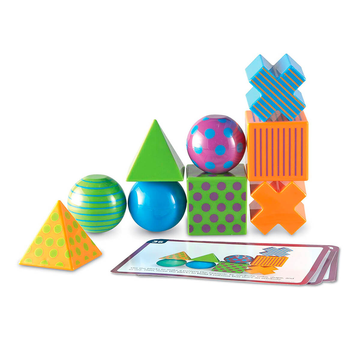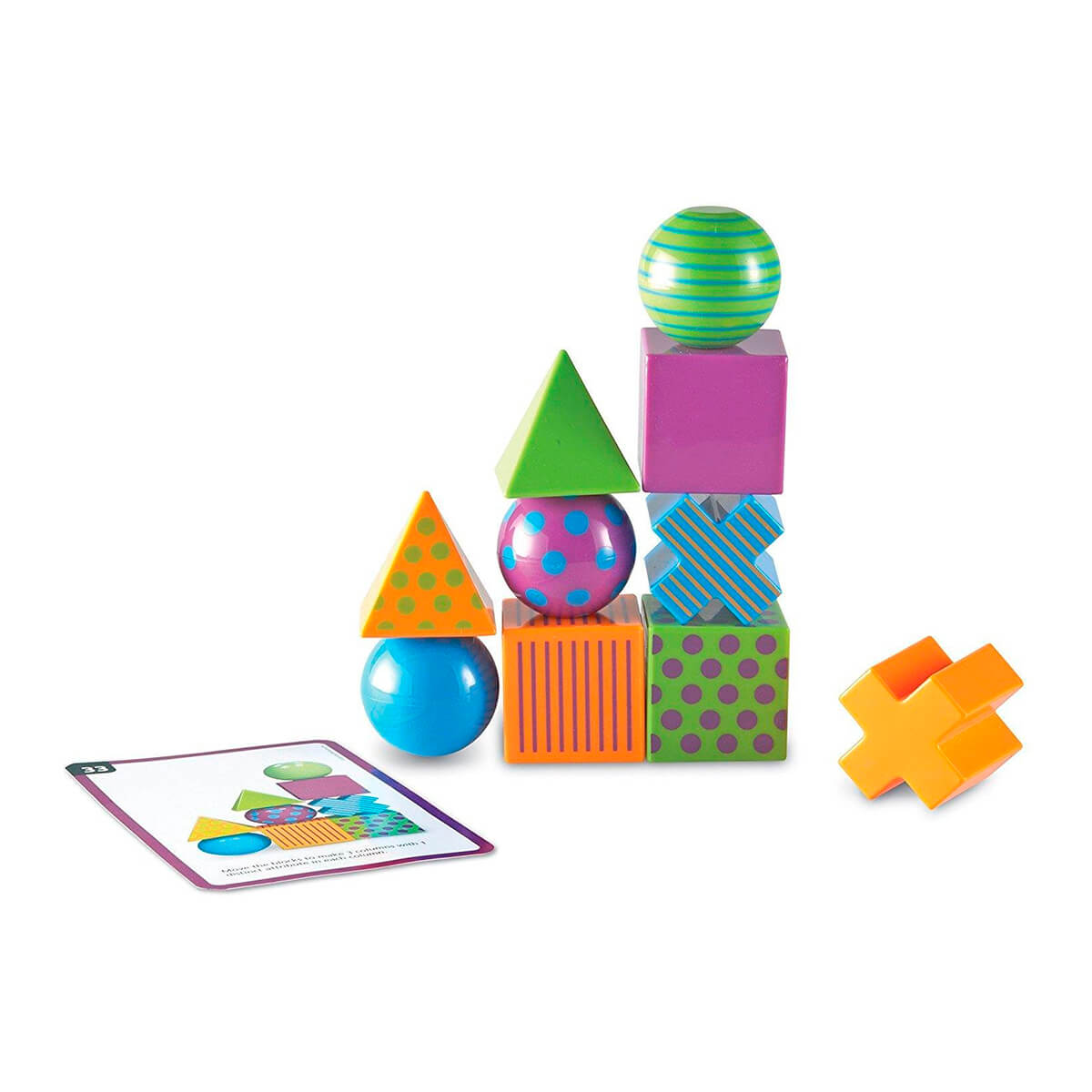 В наборе есть 20 разных фигур 3D и 20 двусторонних карт с заданиями разной сложности, инструкция.