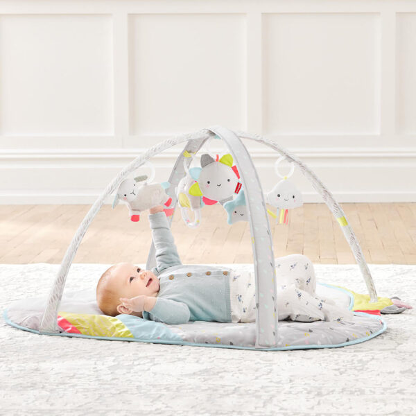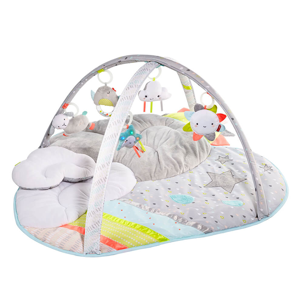Каждое облако имеет серебряную подкладку, и наш мечтательный детский коврик "Серебряное Облако" не является исключением! Коврик имеет мягкую цветовую палитру, дополняющую современный декор, а яркие цвета стимулируют зрение малыша. Пять волшебных подвешенных игрушек привлекут ощущения малыша благодаря свету, музыке и другим эффектам, а большой плюшевый коврик и мягкое облако предлагают максимальный комфорт для игры на животике и исследования игрушек.
