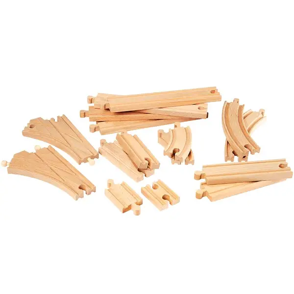 Все наборы поездов, рельсов, аксессуаров имеют классическое деревянное крепление, которое позволяет легко соединять их друг с другом и расширять свой собственный мир BRIO.