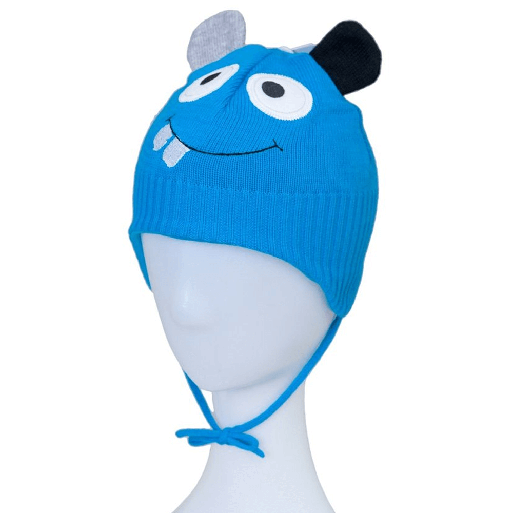 Трикотажная демисезонная шапка с подкладкой для малыша до года. Есть защита ушей ребенка от ветра, завязки. Украшена двумя "ушками", вышивкой в виде забавной мордочки. Состав: 100% хлопок. Цвет – голубой.