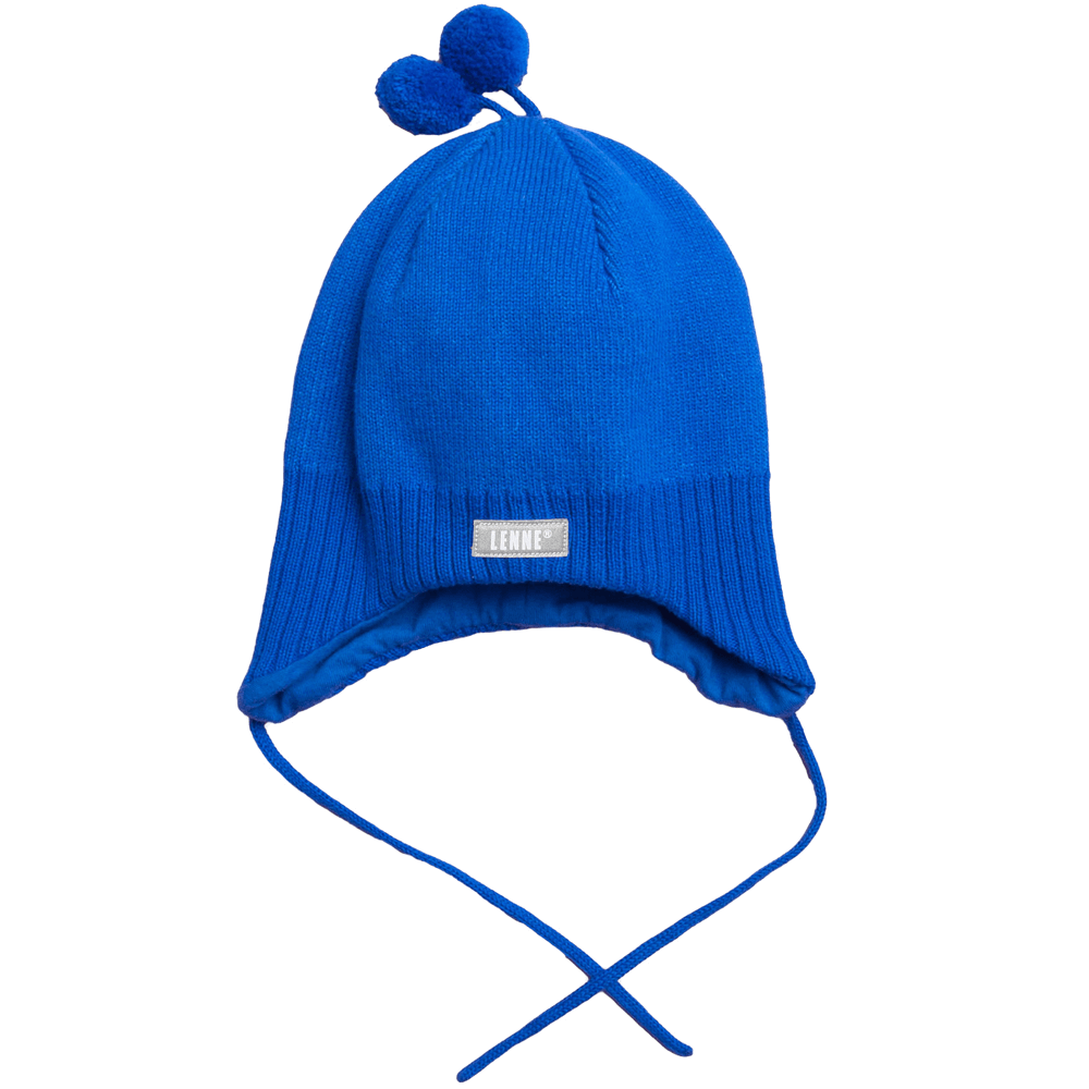 Трикотажная демисезонная шапка с подкладкой для мальчика 7-8 лет. Имеются мембраны для защиты ушей ребенка от ветра, завязки. Украшена двумя бубонами. Состав: 100% хлопок. Цвет – ярко-голубая.