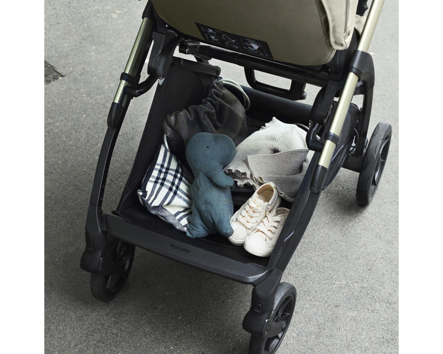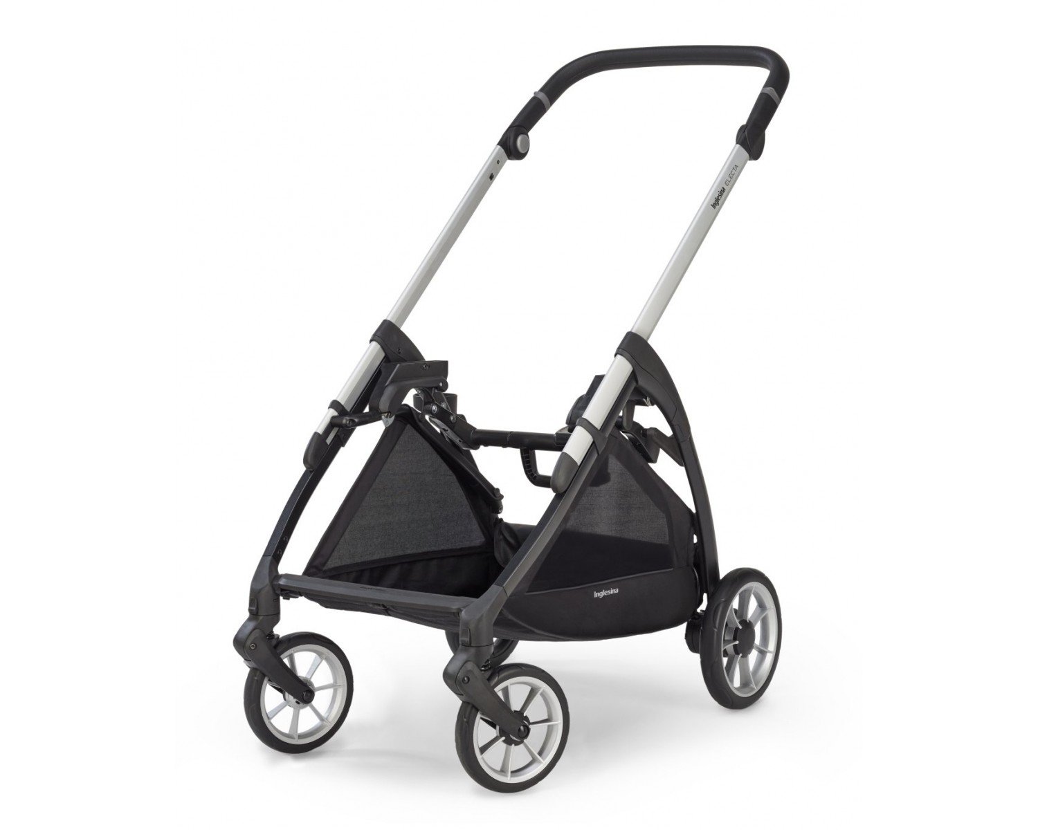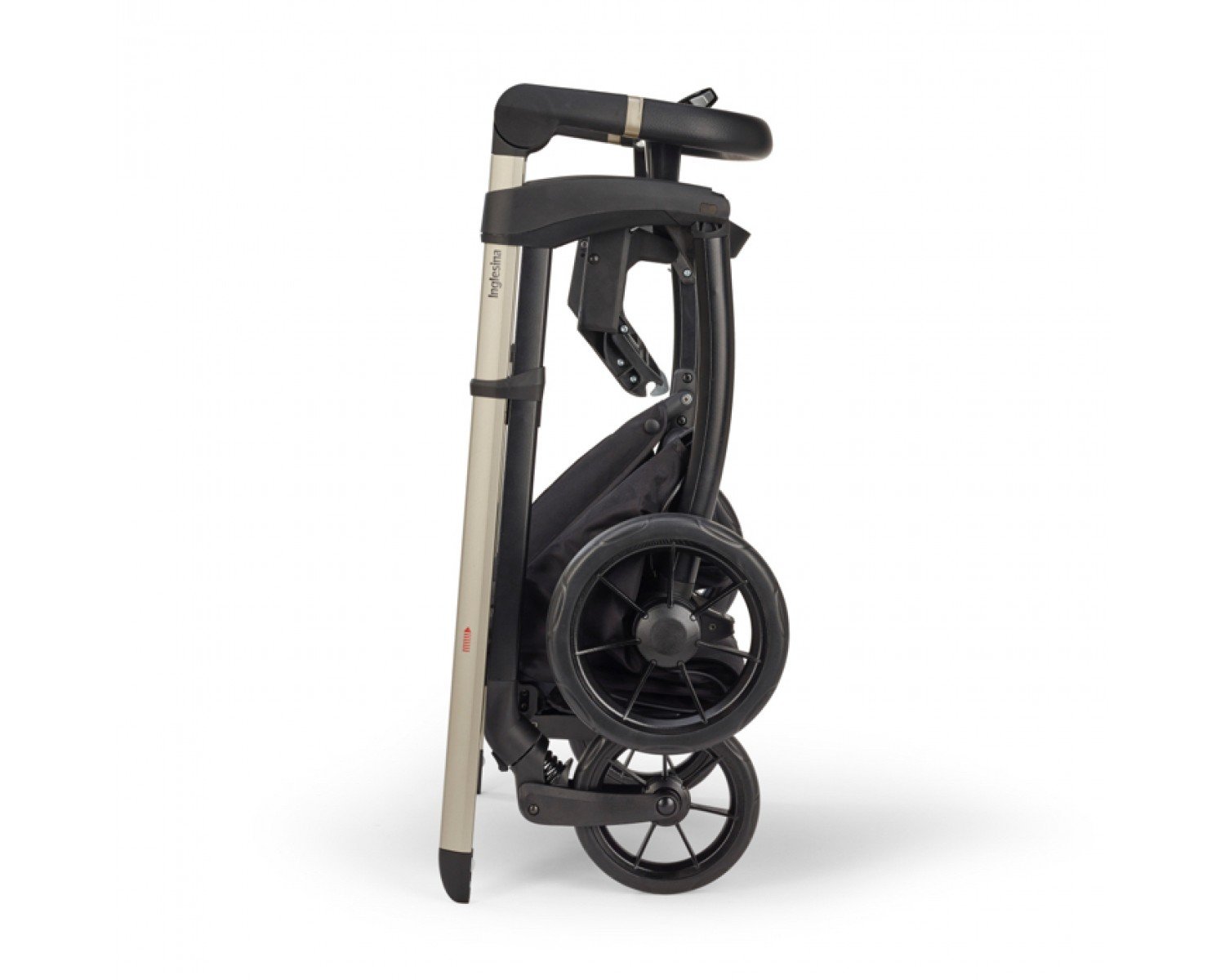 Electa легко закрывается, когда сиденье коляски установлено в обоих направлениях. После закрытия ручка и ткани никогда не касаются земли.