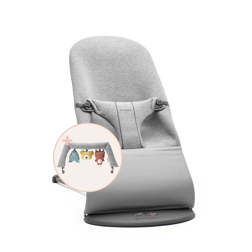 Шезлонг BabyBjorn Bliss 3D Jersey Light Grey, рама Light Grey + игрушка Soft Friends (7317686060727)