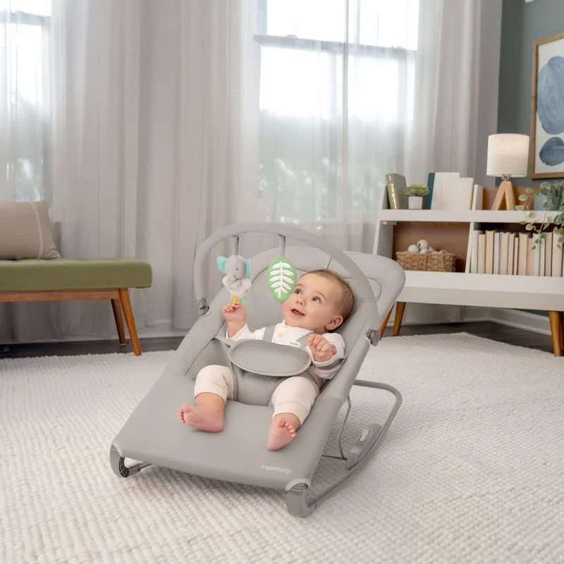 Шезлонг Ingenuity Nestle – легкий и компактный помощник для малышей с рождения до 6 месяцев (весом до 9 кг), который создает уютное и безопасное место, где ребенок может отдыхать, играть или спокойно покачиваться, а мама – получить немного больше свободного времени для повседневных дел.