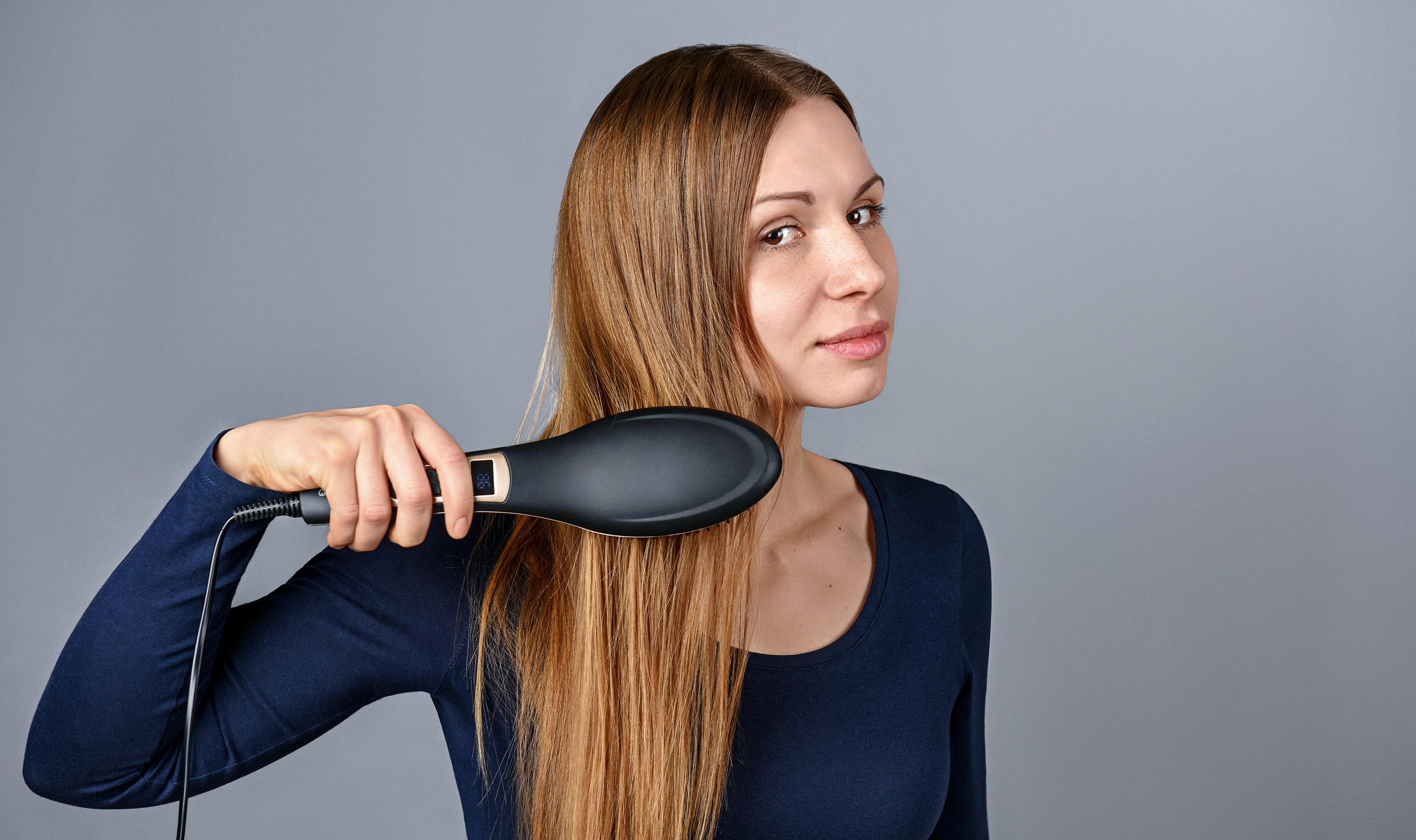 Щетка-выпрямитель ARDESTO HSB-621 с керамическим покрытием и регулировкой температуры для быстрого выпрямления и создания гладкой прически.