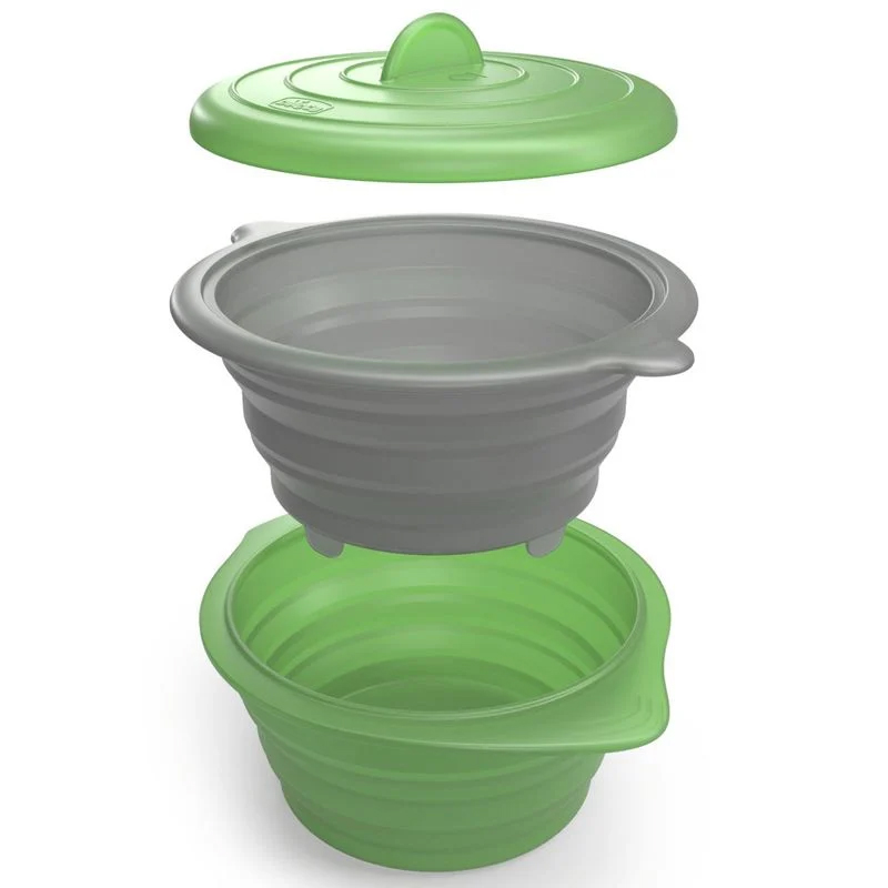 Складной силиконовый контейнер-пароварка Chicco – незаменимый помощник родителей для приготовления полезных блюд. Благодаря деликатной термической обработке паром, продукты сохраняют свой естественный цвет, вкус и максимум питательных веществ.
