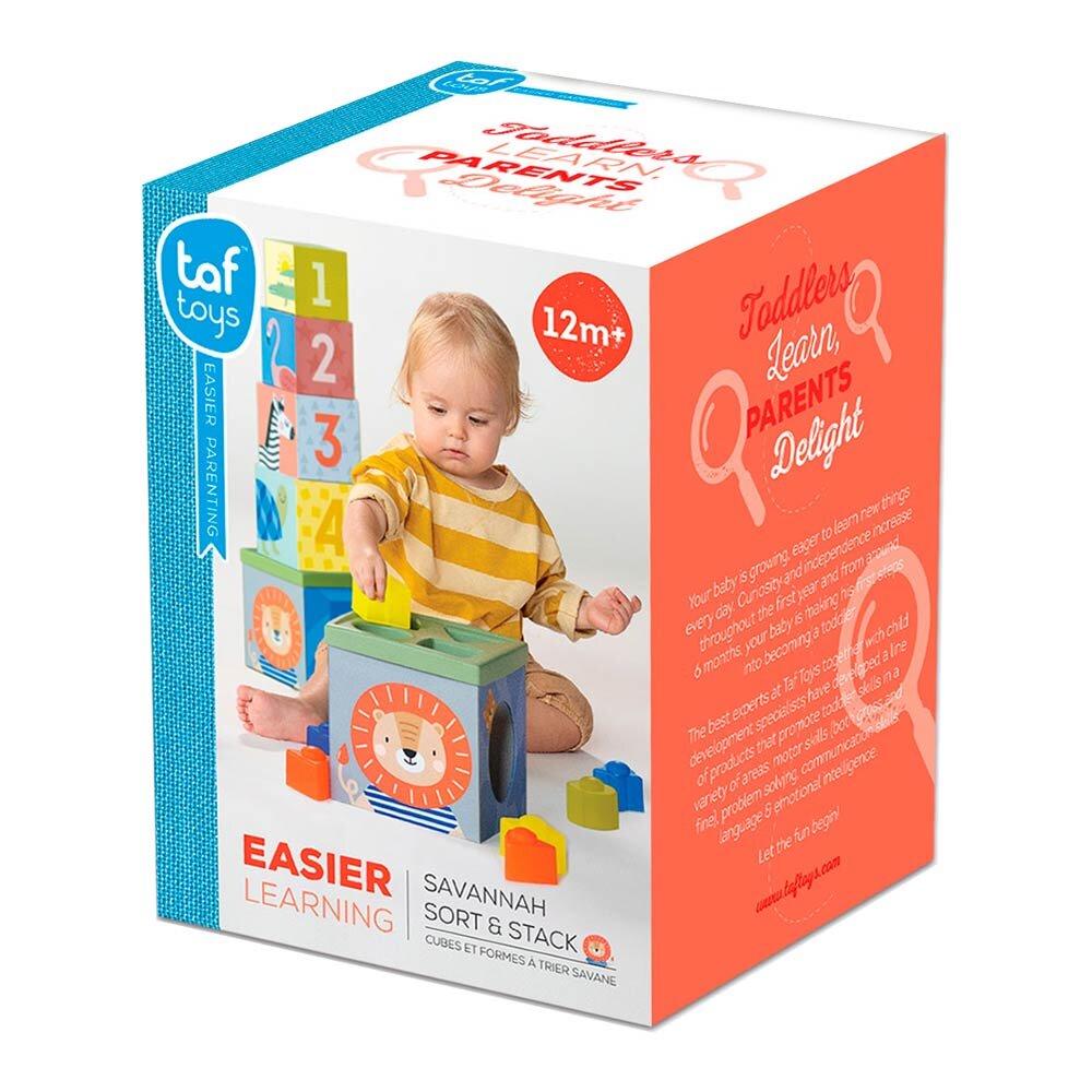 Сортер-пирамидка Taf toys Саванна Кубики Африка — универсальная игрушка для любознательных малышей.