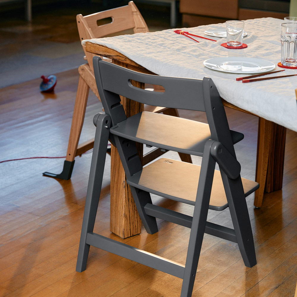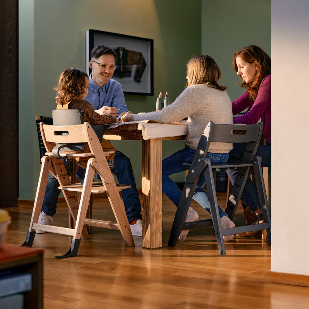 YIPPY сопровождает не только вашего ребенка, но и всю семью в повседневной жизни. Это означает, что при необходимости стульчик можно отрегулировать под рост взрослого. Идеально подходит, когда за столом на больших семейных собраниях мало одного стула. Так же быстро, как и устанавливается стульчик для кормления, его можно сложить и убрать, чтобы сэкономить место. Входящие в комплект накладки на пол обеспечивают максимальную защиту от опрокидывания и позволяют YIPPY стоять самостоятельно даже в сложенном виде. Благодаря практической функции сборки и малому весу YIPPY легко брать с собой в поездку к бабушке и дедушке, а после того как вы там, его можно снова собрать всего за несколько секунд. Ручка на спинке стульчика для кормления еще больше упрощает транспортировку.