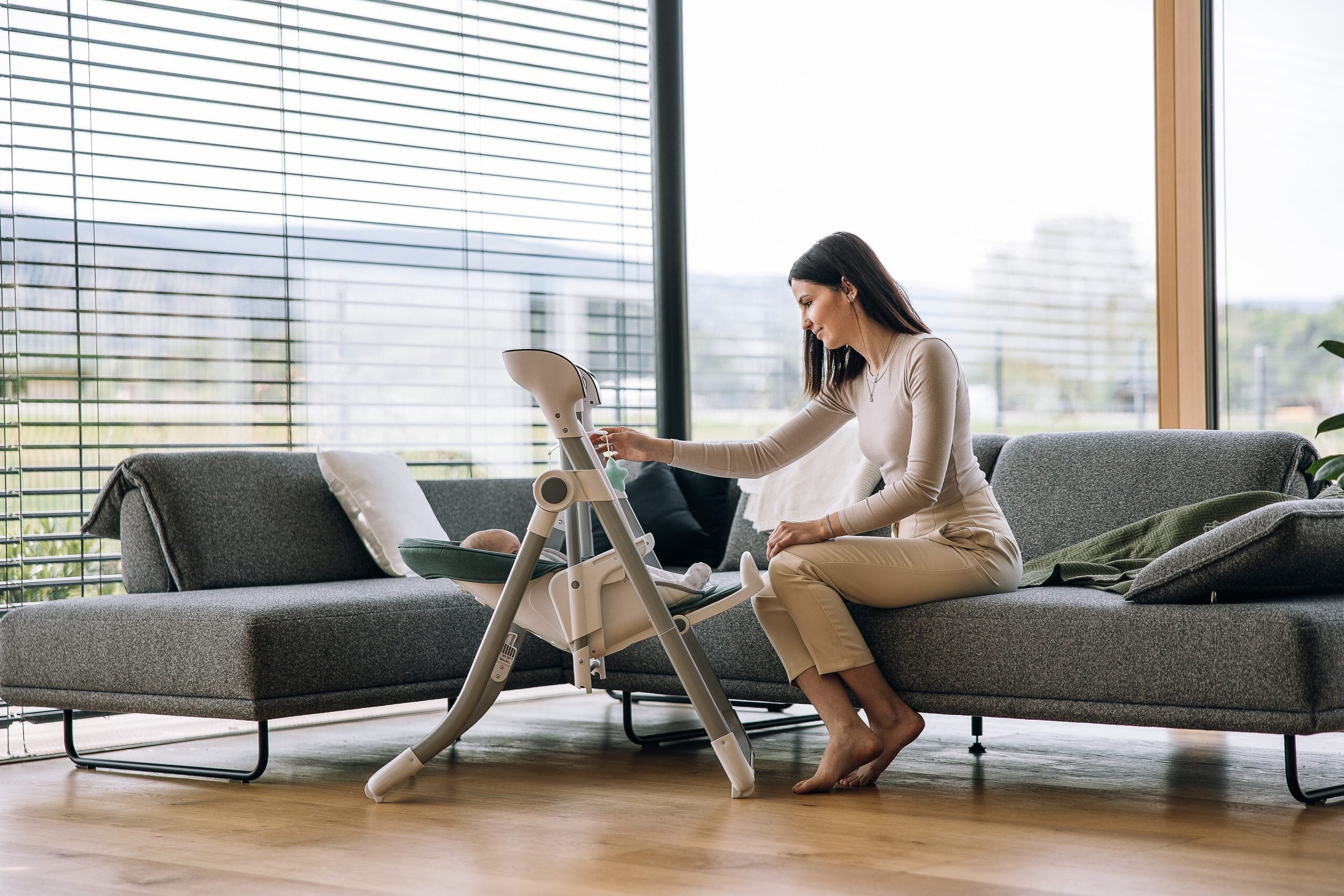 Универсальность: Преобразуется в качалку для детей до 9 кг и стул для кормления детей от 6 месяцев до 3 лет.
