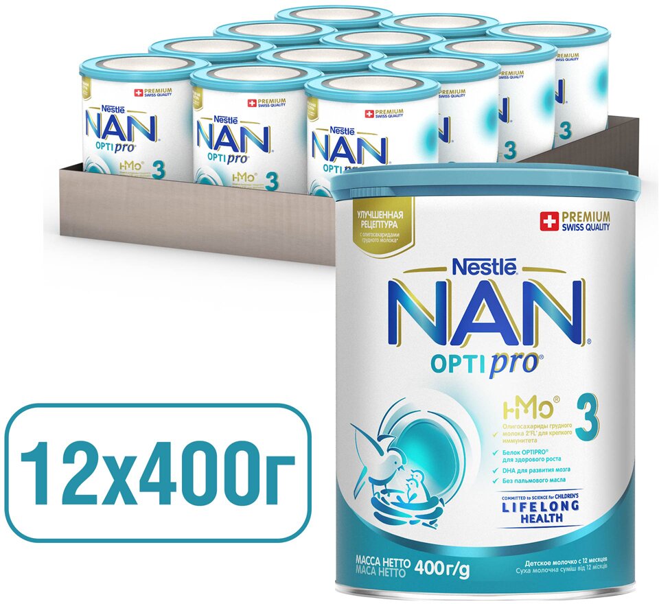 NAN 3 Optipro — специально разработанная сухая детская молочная смесь для питания детей от года до 18 месяцев, созданная на основе данных, полученных благодаря исследованиям Nestlé в области обеспечения здоровья детей в течение всей жизни. Смесь содержит особую комбинацию ингредиентов: Optipro, 2'FL и пробиотик BL, которые поддержат здоровое развитие вашего ребенка, помогая заложить прочную основу для будущего здоровья вашего ребенка.