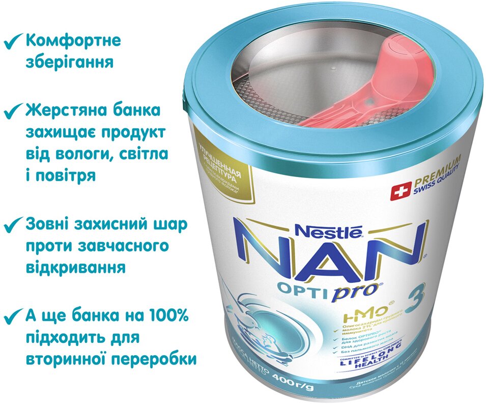 Важная информация: для питания детей грудного возраста предпочтение отдается грудному вскармливанию. Идеальной пищей для грудного ребенка является молоко матери. Продолжайте грудное вскармливание как можно дольше. Перед тем, как принять решение об искусственном вскармливании с использованием детской смеси, обратитесь за советом к врачу. Дата производства (MAN), принять к (EXP) и номер партии производства указаны на дне банки. До и после открытия продукт хранить при температуре не выше 25°C и относительной влажности воздуха не более 75%. После открытия использовать в течение 3-х недель. Не рекомендуется хранить в холодильнике. Идеальной пищей для грудного ребенка является молоко матери. Продолжайте грудное вскармливание как можно дольше. Смесь NAN 3 Optipro предназначена для кормления детей с 12 месяцев и не является заменителем грудного молока и основной жидкой составляющей рациона детей. Перед тем, как решить выкармливать ребенка с применением этой смеси, проконсультируйтесь с врачом.