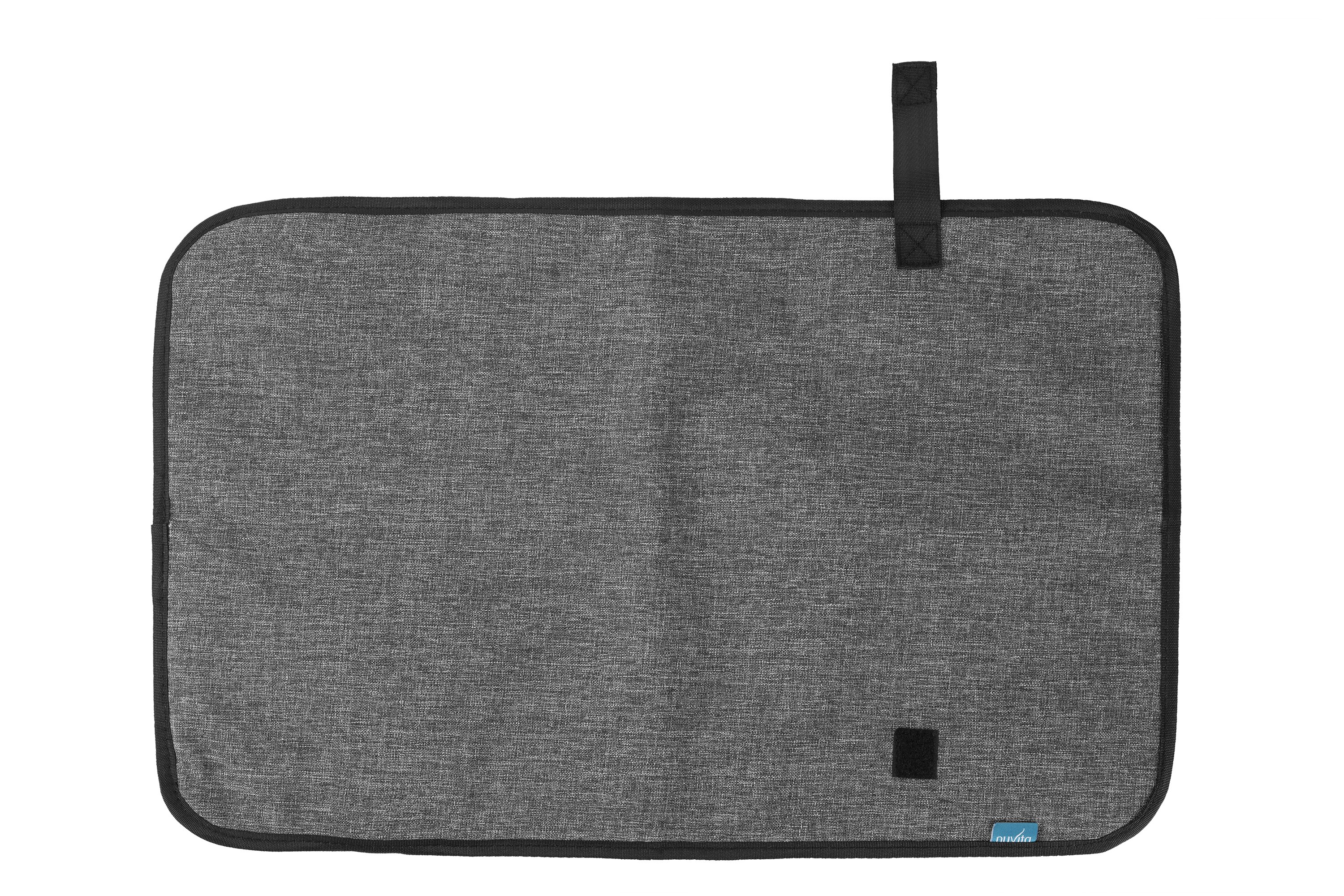 Внутренняя часть изготовлена из полиэстера с сетчатыми, резиновыми и полиэтиленовыми вставками, коврик для смены подгузников - из полиэстера с мягким наполнителем, можно гладить.