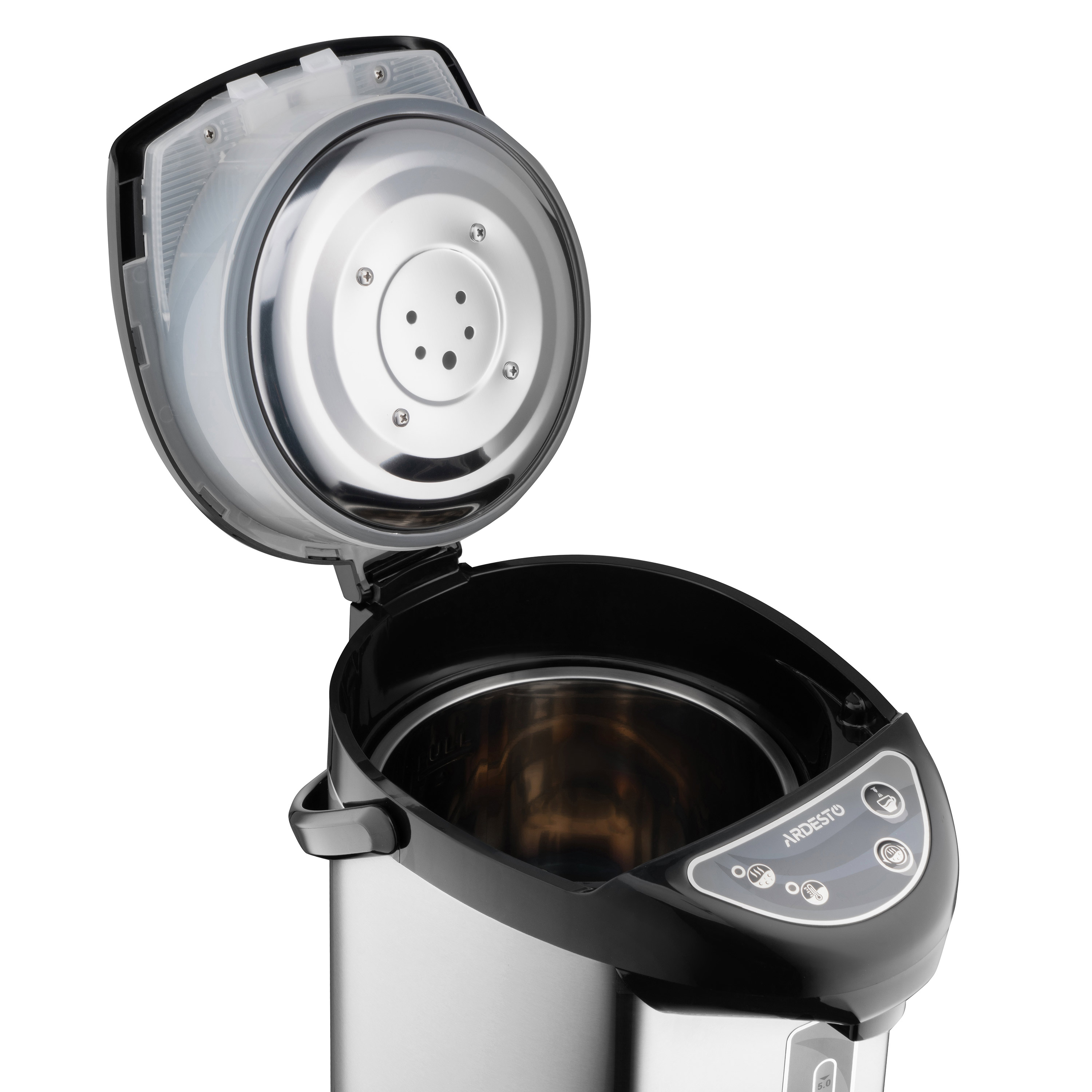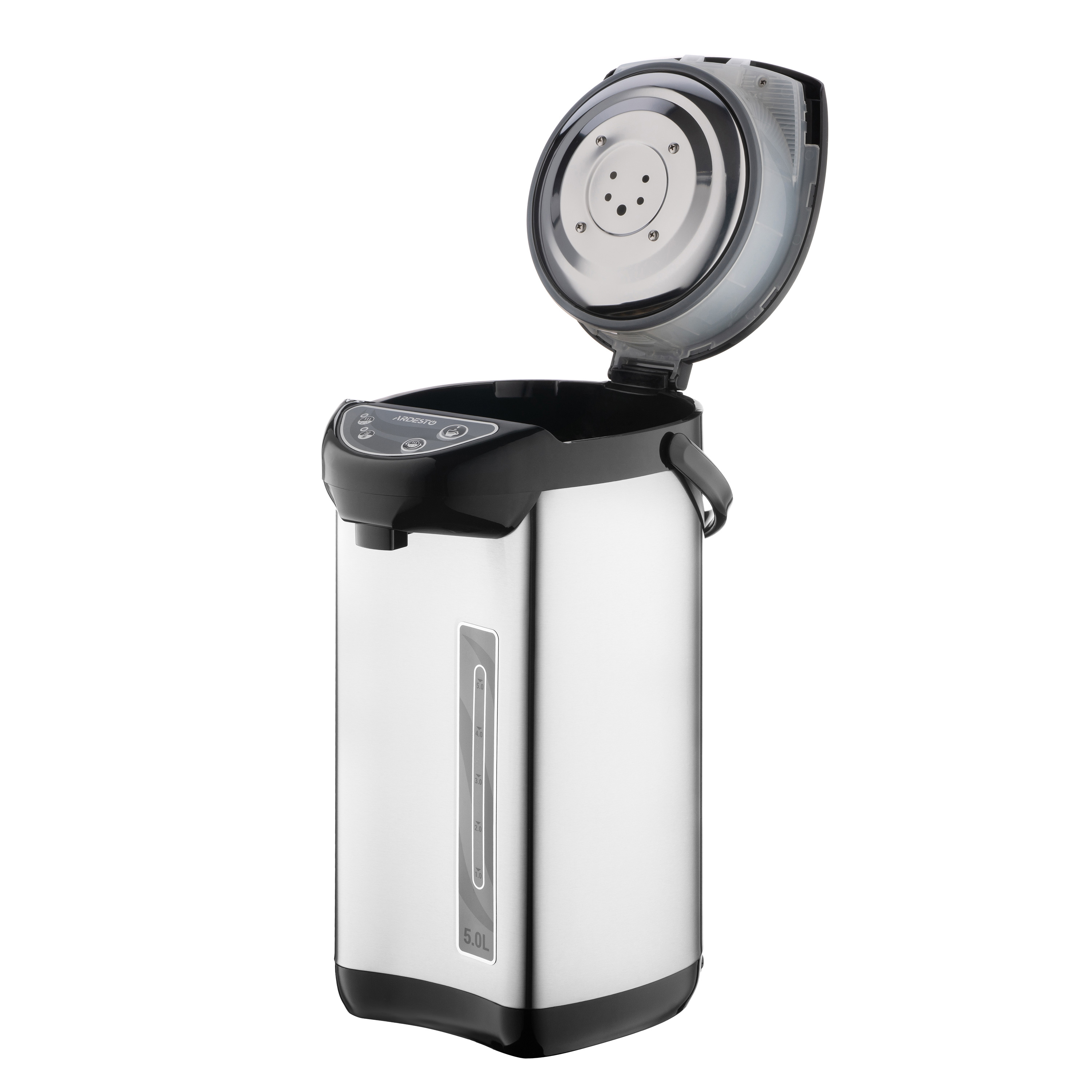 Внутренняя емкость термопота изготовлена из качественной нержавеющей стали SUS304, поэтому долговечность и безопасность использования гарантирована. Скрытый нагревательный элемент защищен от повреждений, а система безопасности предотвращает перегрев и работу устройства без воды.