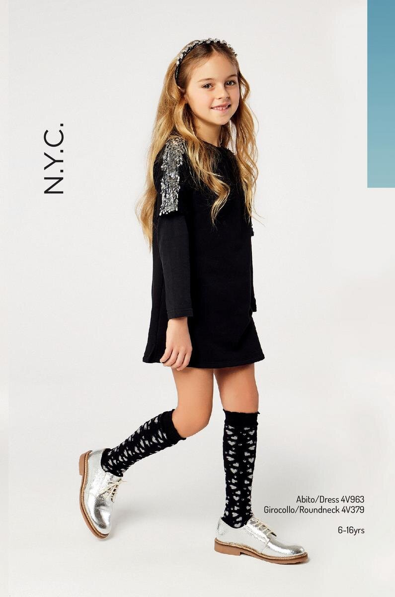 Повседневное платье свободного покроя прямого силуэта, с длинными рукавами. Сшитое из черного теплого трикотажа. Состав 95% хлопок, 5% эластан. Эффектности наряду придают блестки, пришитые по плечам.