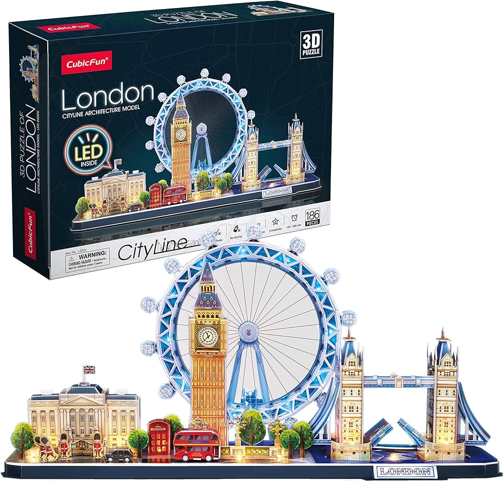 Вы имеете возможность ощутить атмосферу замечательного города, собрав собственный трехмерный пазл CubicFun City line Лондон с LED подсветкой.